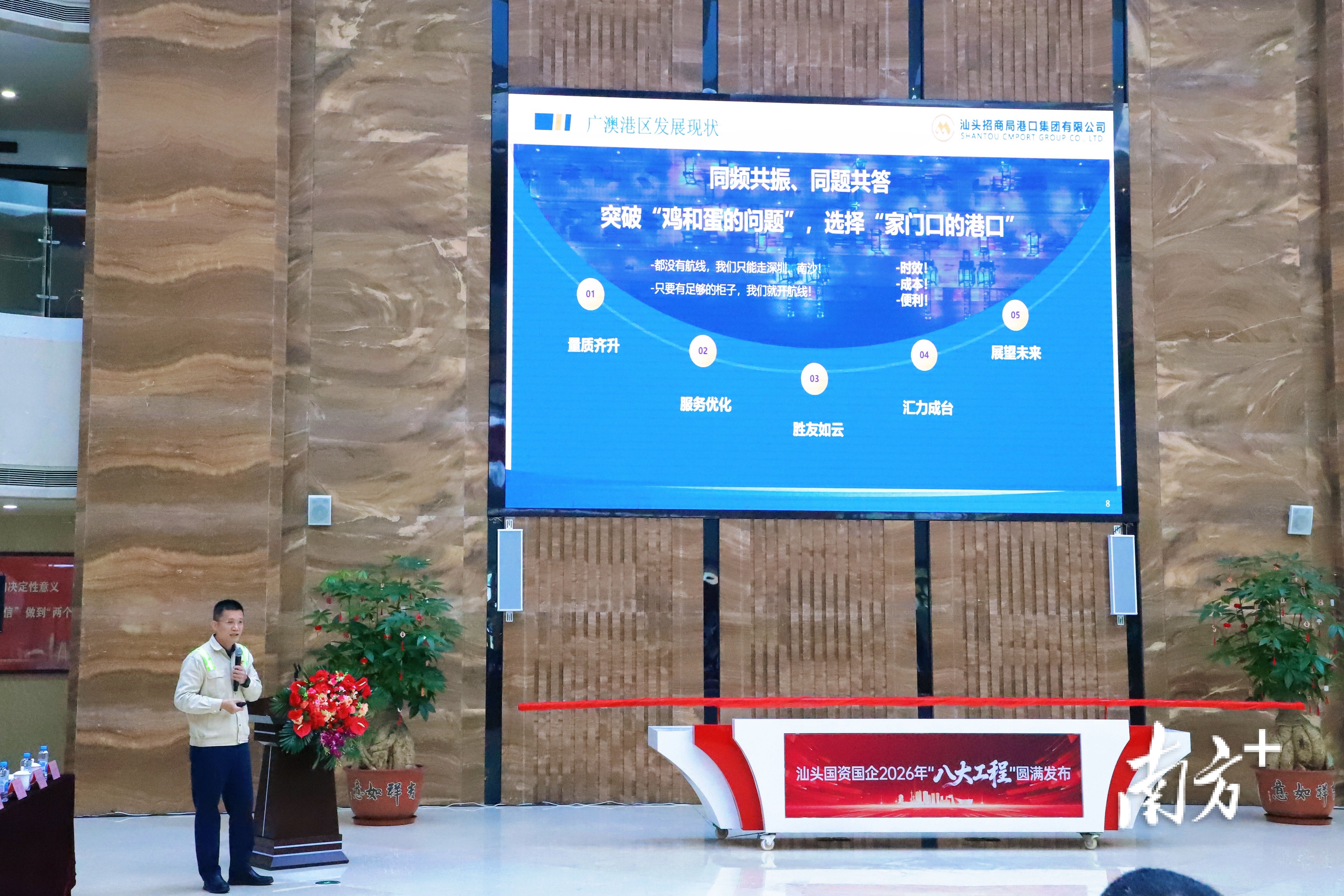 据介绍,汕头广澳港自2017年招商局运营以来实现跨越式发展,现已建成10万吨级集装箱泊位,拥有18条外贸直航班轮和11条内贸航线,覆盖东南亚及国内沿海主要港口,2025年集装箱吞吐量达170万标箱,本地货占比120万标箱,粤东市场份额提升至84%,外贸集聚率达99.5%。硬件设施、运营服务及业务规模均迈上新台阶,已具备支撑临港经济发展的基础条件,且依托疏港交通规划,未来有望跻身中国沿海干线港行列。