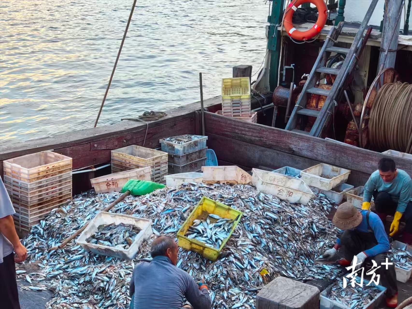午后3时,阳光斜照在阳东区东平镇的码头上,渔船的马达声由远及近,码头迎来一天中最富生机的时刻。几个水盆、几个塑料筐、一张小板凳,渔民们利索地支起摊位,不过片刻,宁静的码头就变身为一个喧腾的海鲜集市。