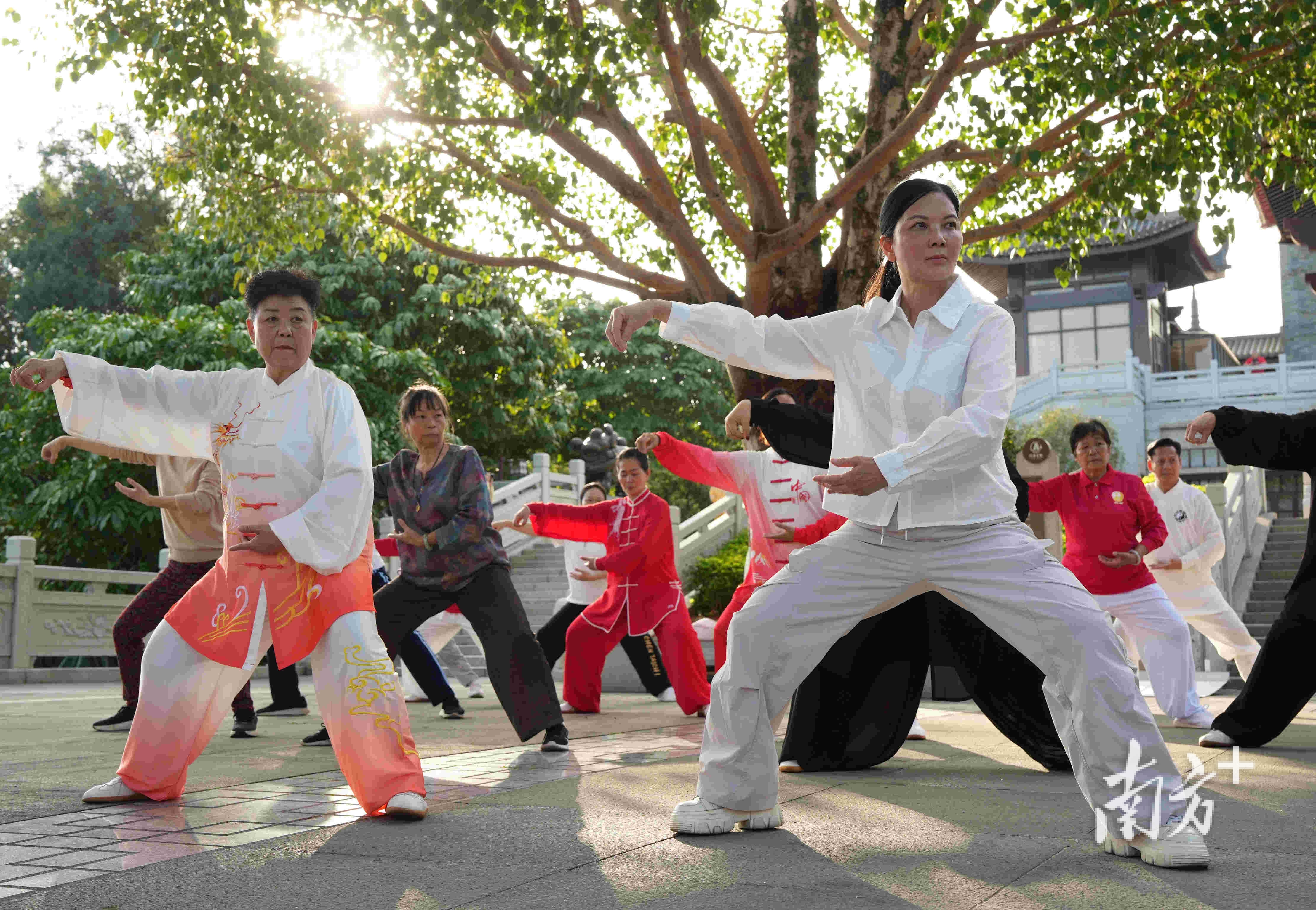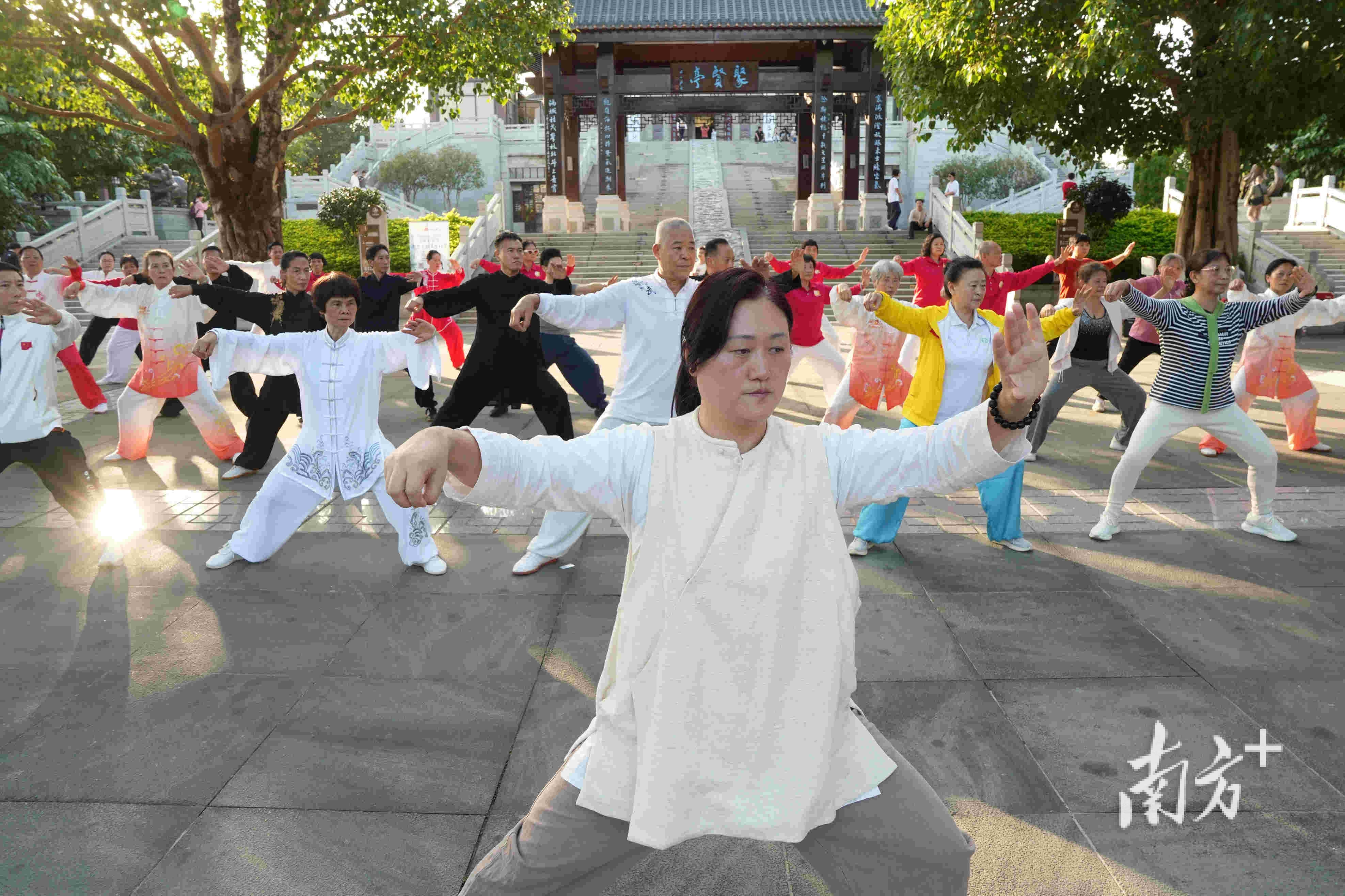 冬至前夕,佛山𧒽岗山上,清风徐徐。50余名太极爱好者跟随全运会冠军的引导,在开合收放、动静相宜的太极拳式中,感受着东方养生哲学的韵律。