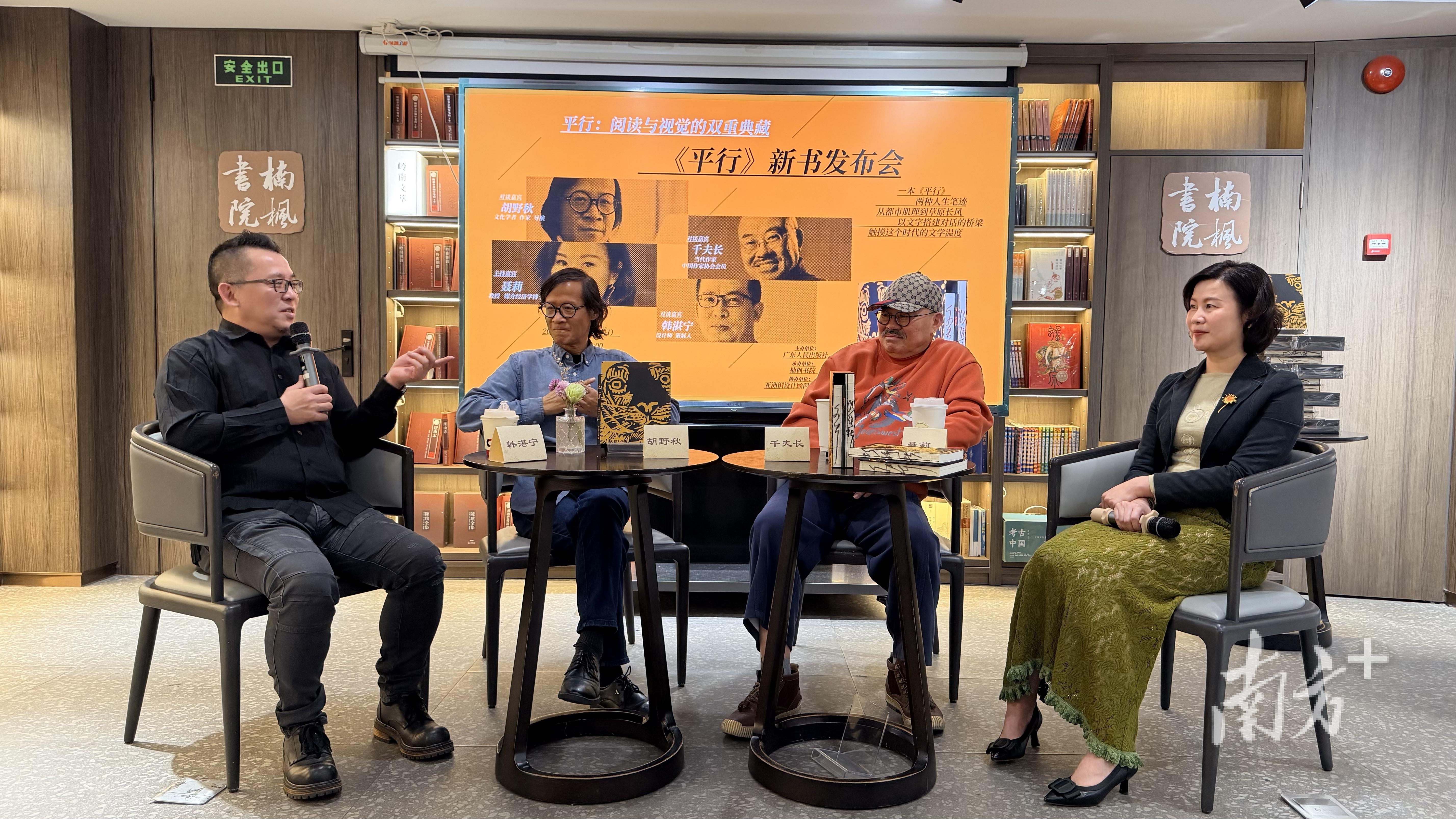 12月21日下午,《平行》新书发布会在广州楠枫书院举行,学者聂莉,作者胡野秋、千夫长,设计师韩湛宁共同展开一场关于文学、记忆与创造的对话。