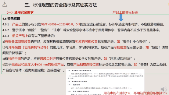 警示标识:“危险”“警告”等安全警示字体不小于四号黑体字,内容不小于五号黑体字,并需经擦拭测试后清晰可辨。