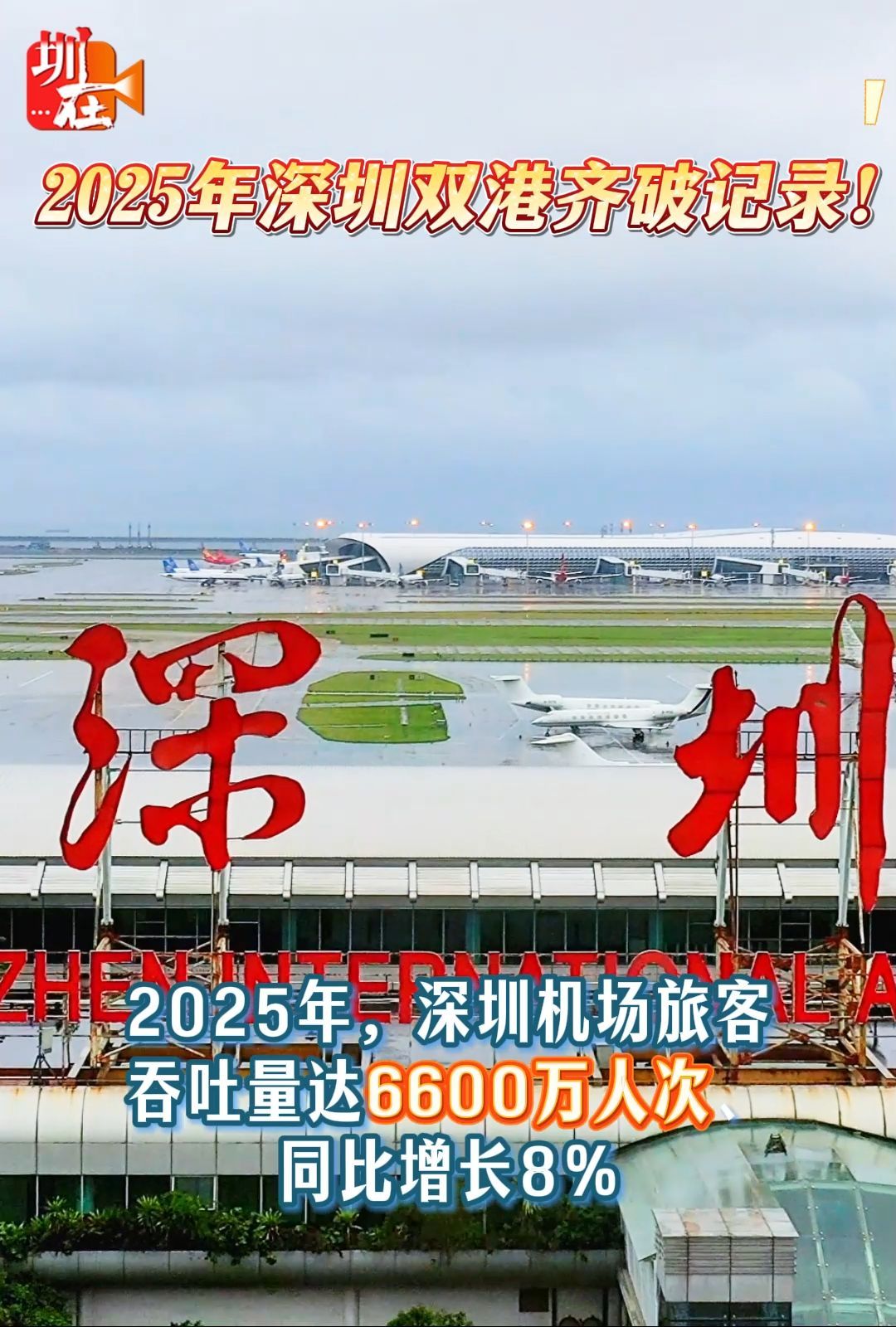 2025年,深圳机场旅客吞吐量达6600万人次、同比增长8%,单月最高达602.38万人次,打破历史最高纪录。同时,深圳机场货邮吞吐量达205万吨、同比增长9%,达到历史最高水平,其中国际及地区货邮吞吐量突破100万吨,成为中国内地第三个年进出口货量破百万吨的机场。