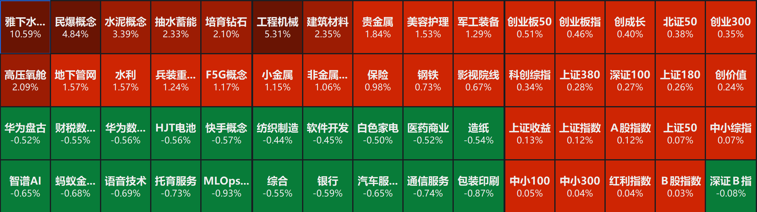 消息发布后,水利、基建、钢铁、水泥、工程机械以及西藏本地股等相关概念股纷纷涨停,其中水泥板块更是几乎全员涨停。