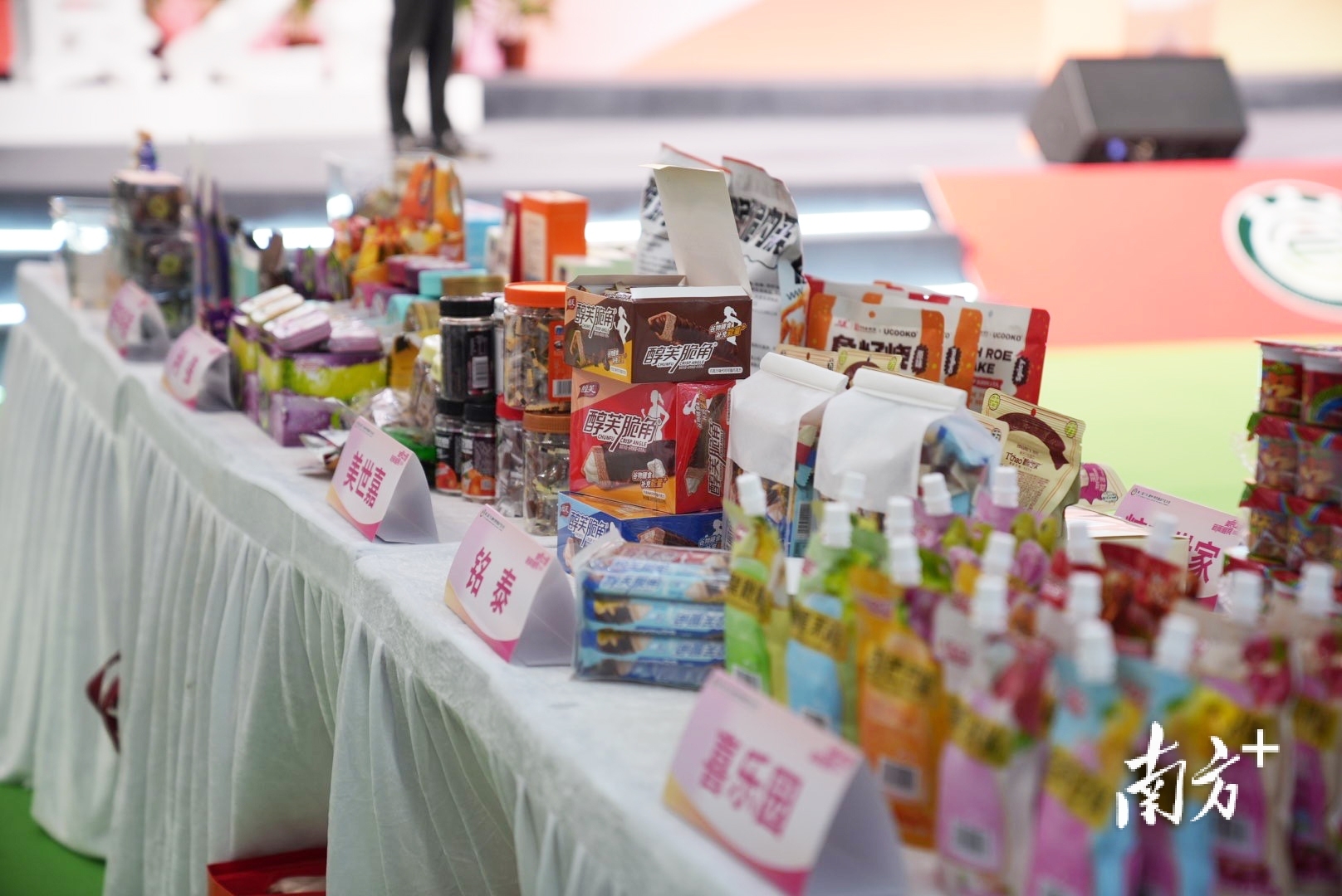活动现场,40家参展企业集中展示创新产品:健康饮品金银花蓝莓汁、运动零食电解质西梅冻、儿童食品可吸果冻棒棒冰、夜经济单品发光酸味软糖等特色产品备受关注,现场达成多项采购意向。