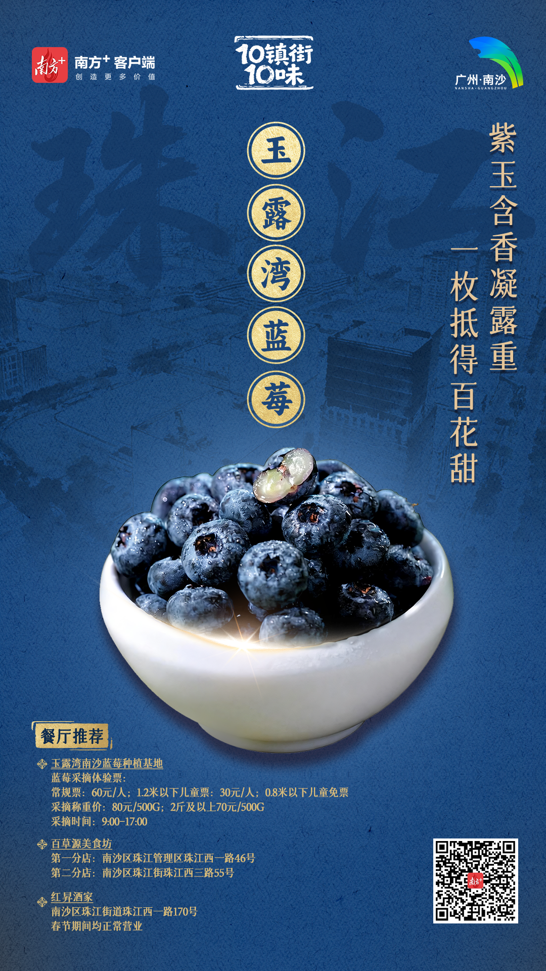 玉露湾蓝莓,是广州南沙现代农业产业集团旗下标准化种植基地培育的明星产品。400亩现代化的蓝莓种植基地优选“南高八号”品种,采用无土栽培、智能水肥一体化等科技精心培育,果实直径普遍在18—26毫米之间,大果堪比一元硬币,果形饱满紧实。果实口感独具特色,甜度高达11—14度,并伴有淡淡花香,且花青素含量是普通蓝莓的2.5倍,营养与美味兼得。