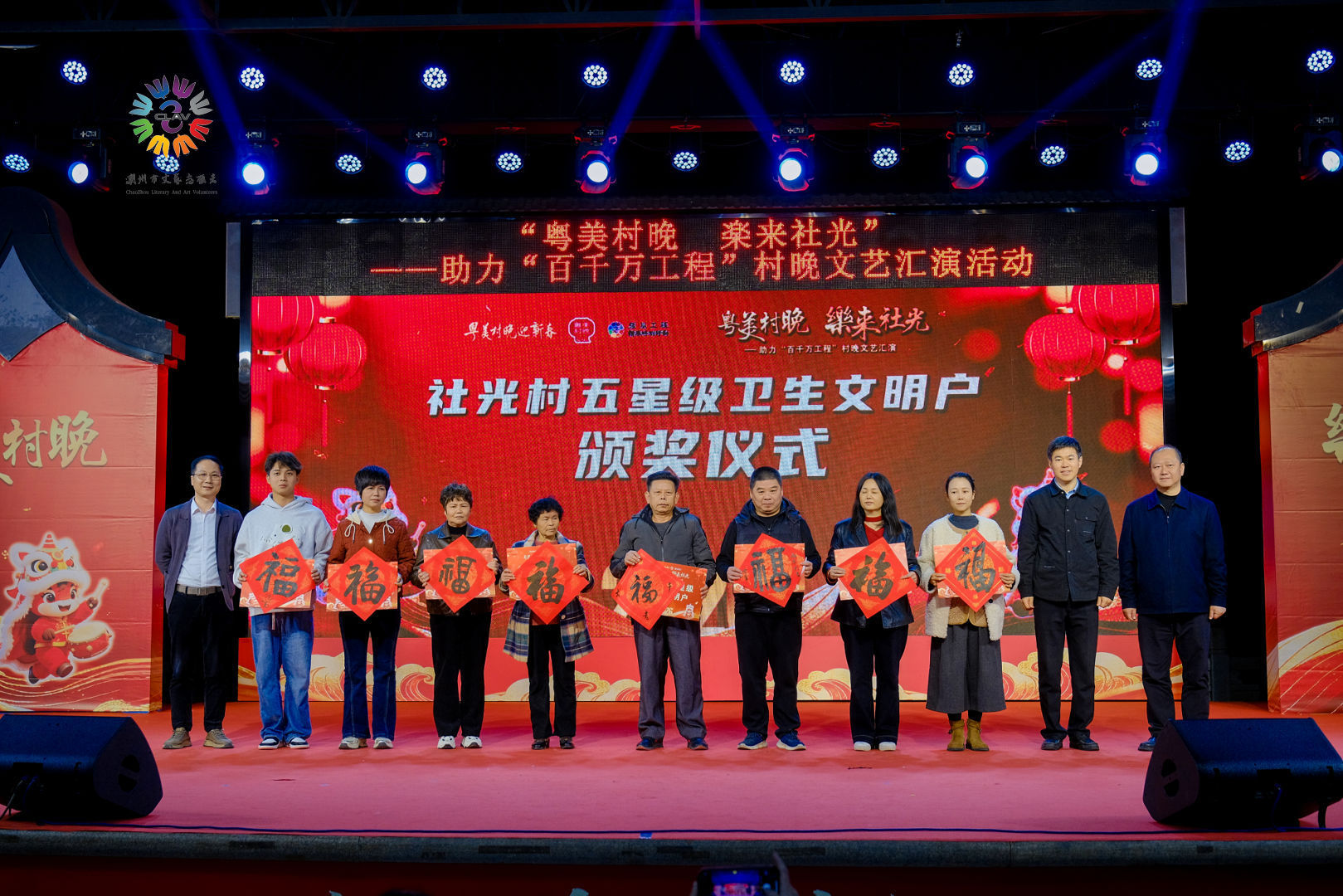 晚会特别设置的表彰环节,将基层治理与乡风文明建设的成果搬上荣耀的舞台。在热烈的掌声中,“2025年度助力社光发展五大优秀企业”与“十大优秀村民”先后接受颁奖。而最受关注的,莫过于“2025年度五星级卫生文明户”的揭晓。