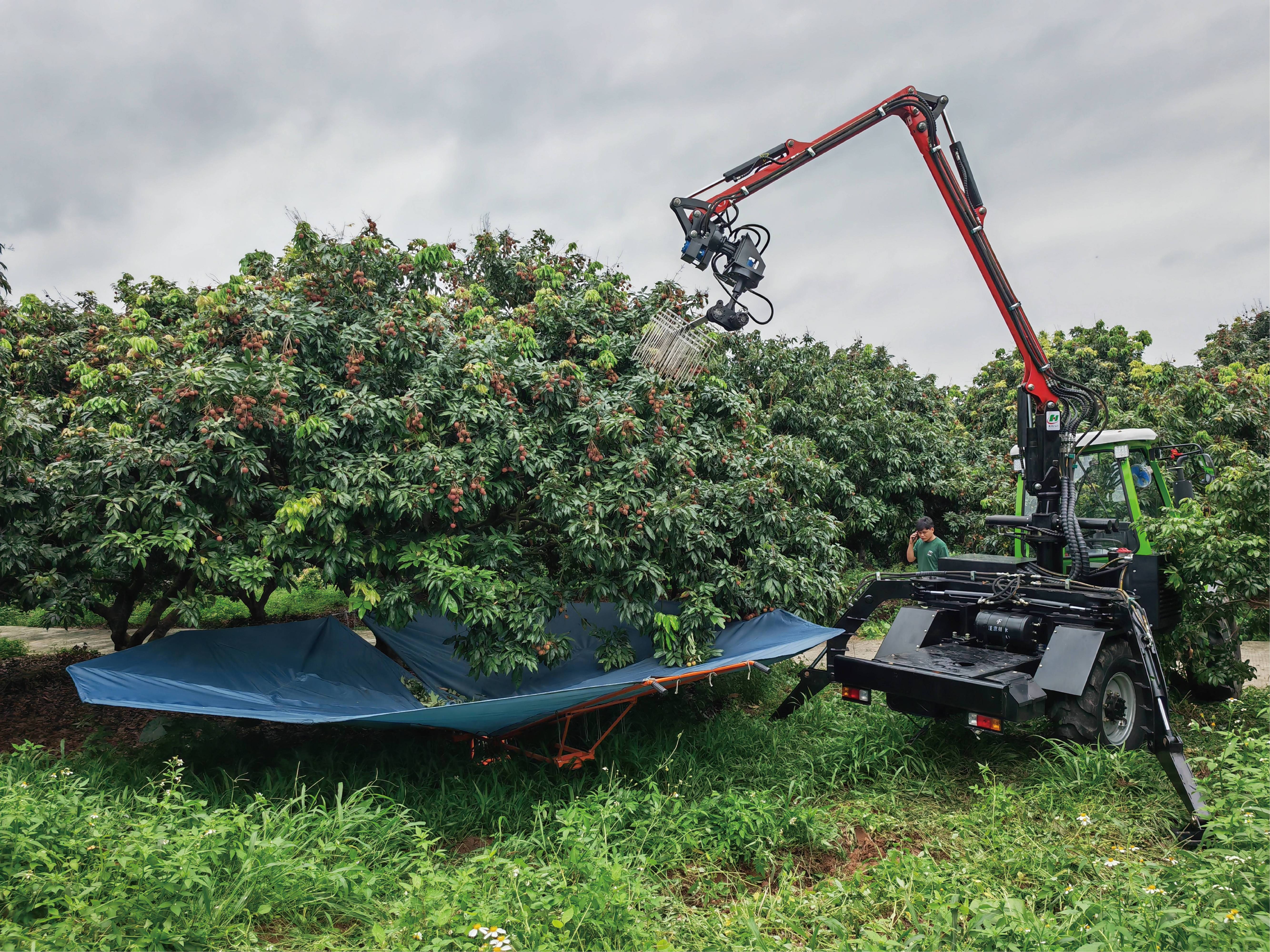 针对劳动强度大、危险性高的高枝果采摘,广州市科技局支持研发的高枝采摘机器人,能配备“温柔”的机械臂,单机每天能采200公斤荔枝,相当于8个熟练工人。
