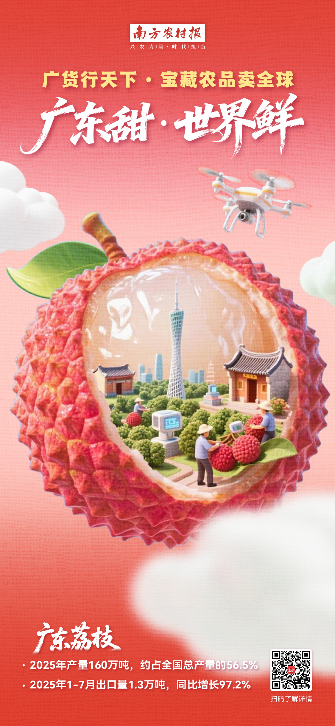 从借助《长安的荔枝》电影打造文化IP,到 “小红书村”用“潮表达”介绍“土特产”,再到茂名高达120亿元的全产业链总产值。这颗岭南佳果的全球旅程,正成为“广货行天下”最生动的注脚。