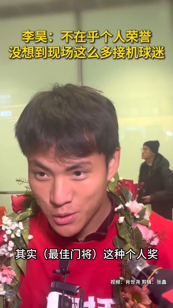 “没想到会有这么多球迷,看到这么多人来接机非常激动,感谢他们的支持。”李昊表示,他对没有获得本届亚洲杯最佳门将并不在意,“个人奖项对我不重要,我更在意没有拿到冠军。未来把冠军拿下来,那才是中国足球最光明的时候。”