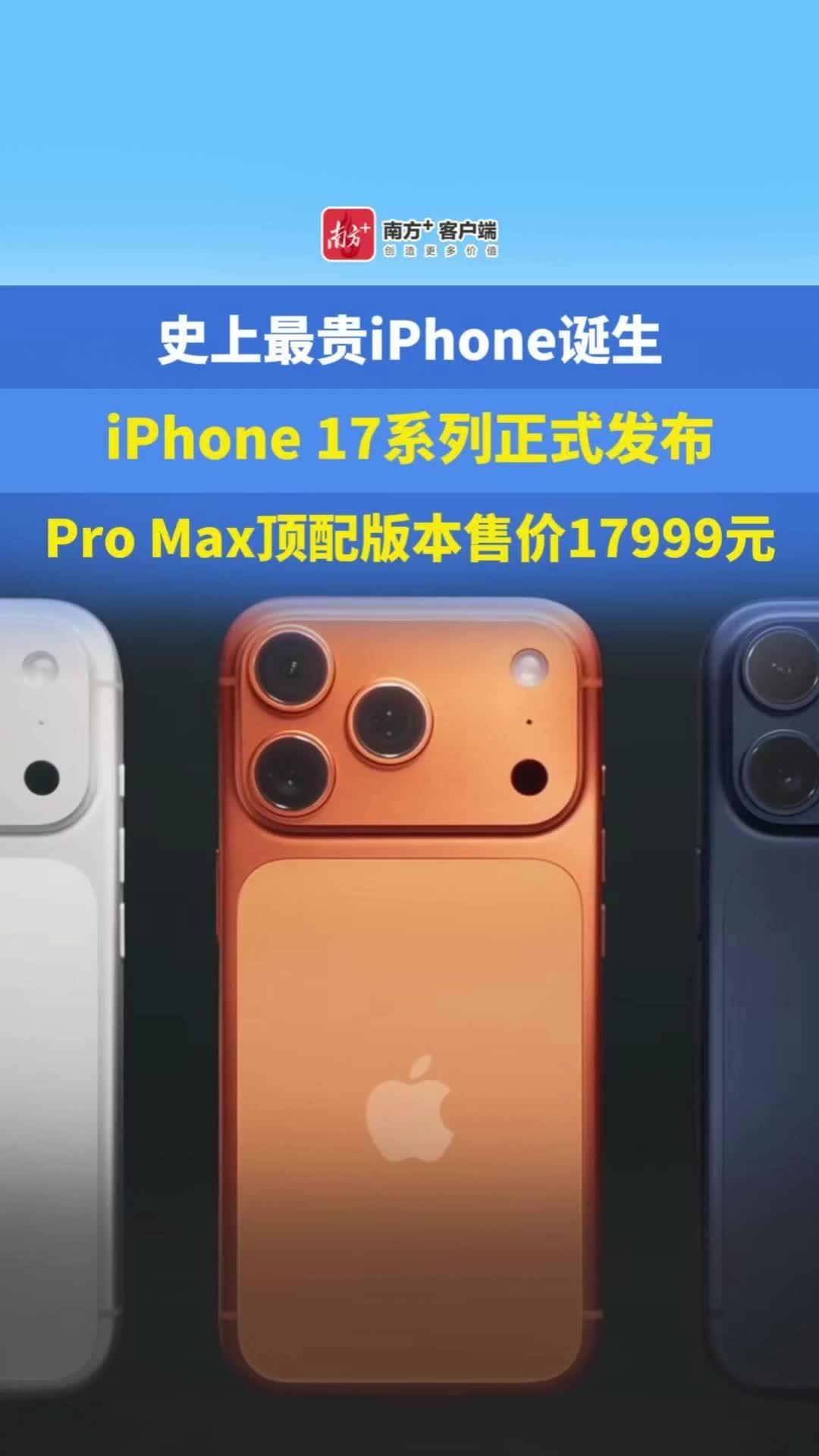 苹果iPhone 17系列正式发布,Pro Max顶配版本售价17999元