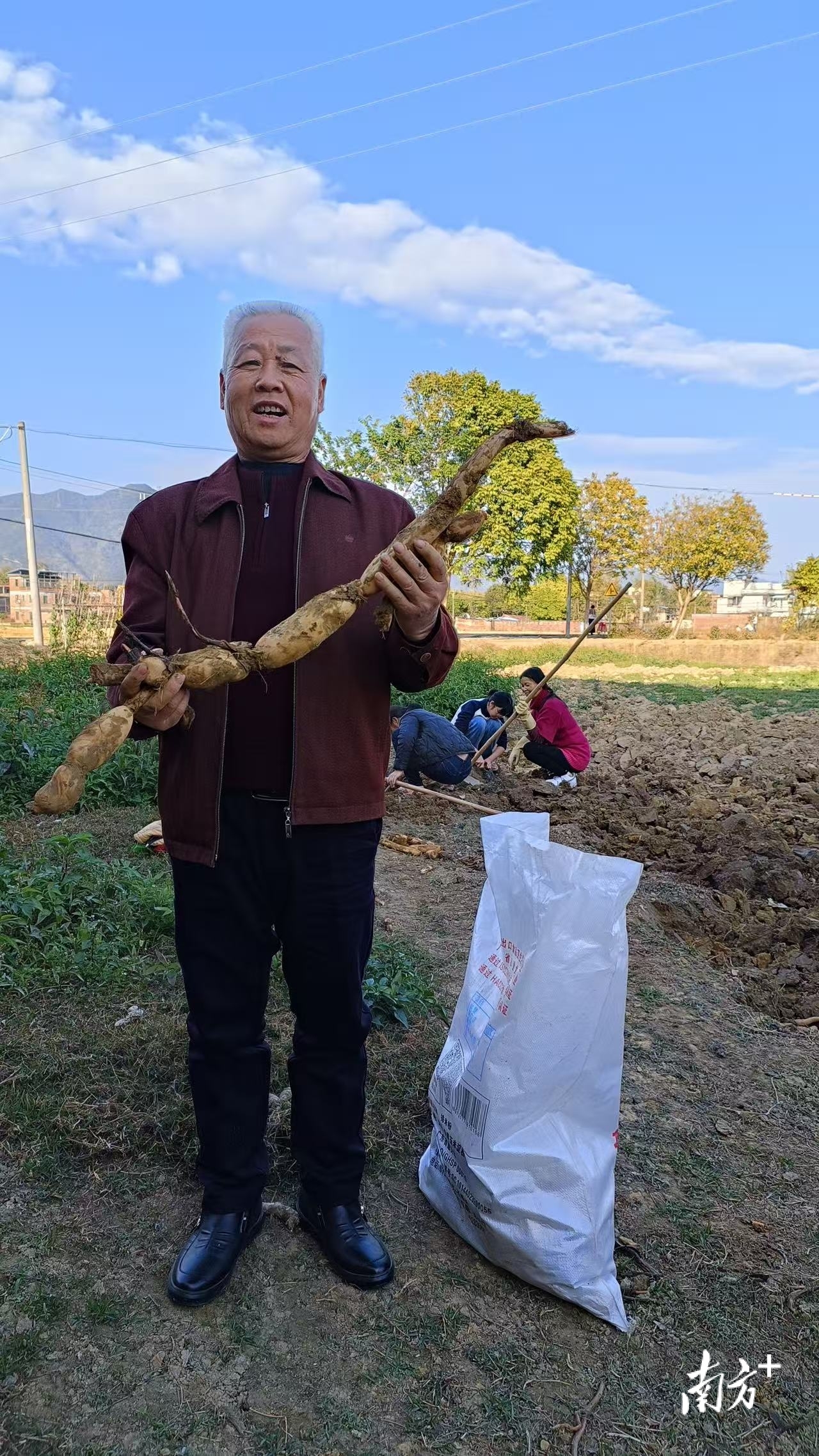 莲藕丰收,老人手捧肥美的莲藕。江绮雯 摄