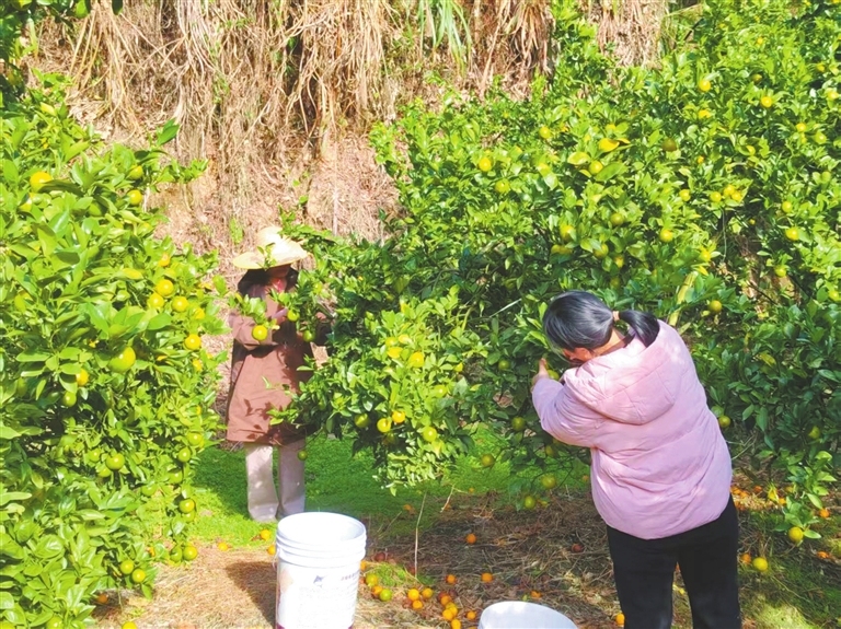 日前,在和平县古寨镇梅华村皇帝柑果园,成熟的果实挂满枝头,空气中弥漫着清新果香。