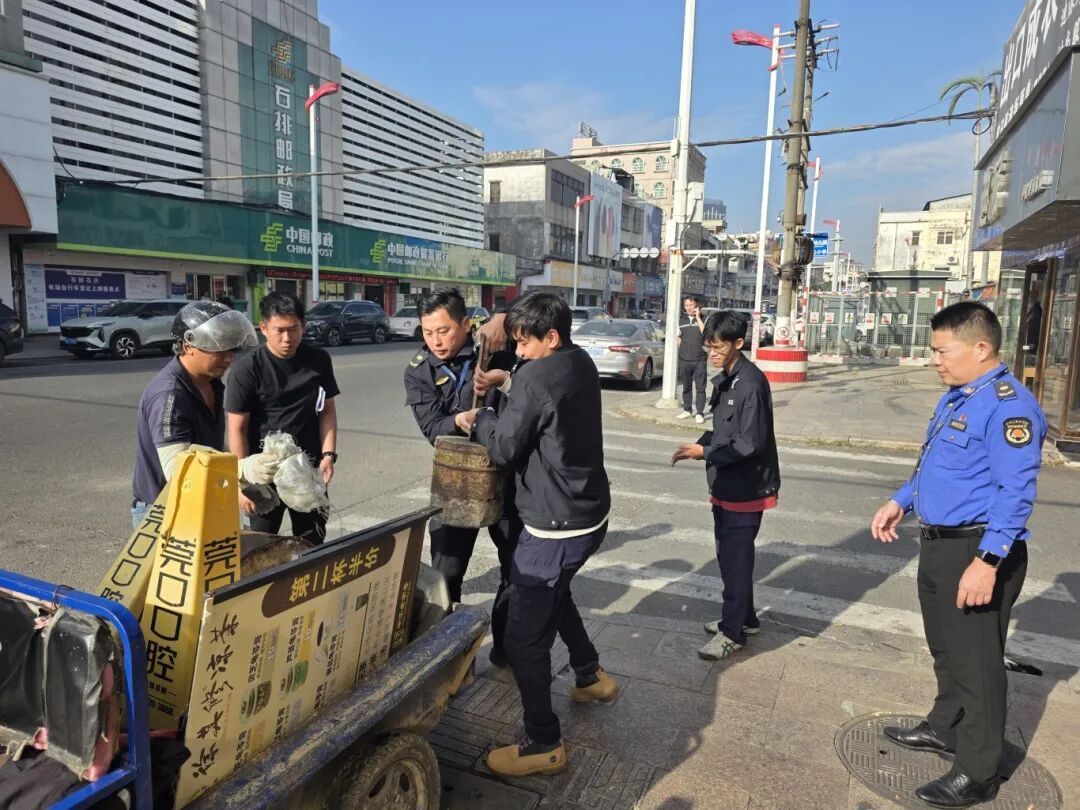 自专项行动启动以来,石排城管执法分局联合各村(社区),以“零容忍”态度和铁腕手段,对长期影响市容环境的痛点、难点问题进行集中攻坚。通过镇村联动、多部门协同,特别是针对石兴市场、利丰路等重点区域及周边,开展了高强度、高密度的集中整治与长效管理。