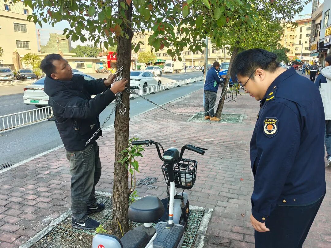 行动中,镇领导高度重视,镇分局领导统一部署,以分局执法组、属地村城管干部和城管片长为先锋力量,凝聚城管助理、辅警、网格员、环卫工人等参与到这一系列的整治行动中,累计共清理占道雪糕筒、石墩、凳子、禁停牌等各类占道物品7930件,清理镇内各主干道的共享电动车5460辆,设置物理隔离装置12处,整治行动取得工作成效。为保障整治行动可持续推进,石排城管分局迅速建成并完善了镇级暂扣物品集中停放场,并配备了安保与监控系统,为整治行动提供了坚实保障。