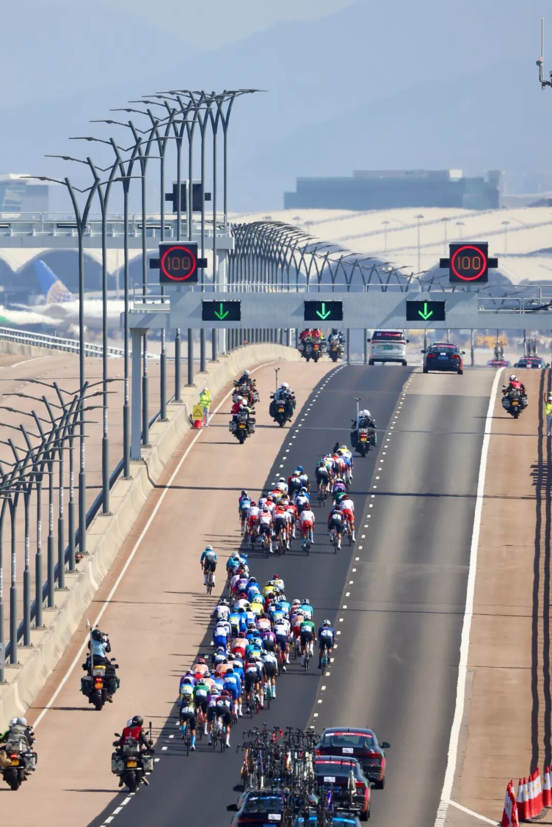 港珠澳大桥是赛事的“分水岭”,开阔桥面易受横风影响,若遇下雨天气,湿滑路面会进一步增加控车难度。此时选手会频繁调整队形,或采用“单列破风”减少侧风冲击,或靠拢形成“集团防御”。关注选手是否出现车身摇晃、队形分散,这往往是战术突破的信号。