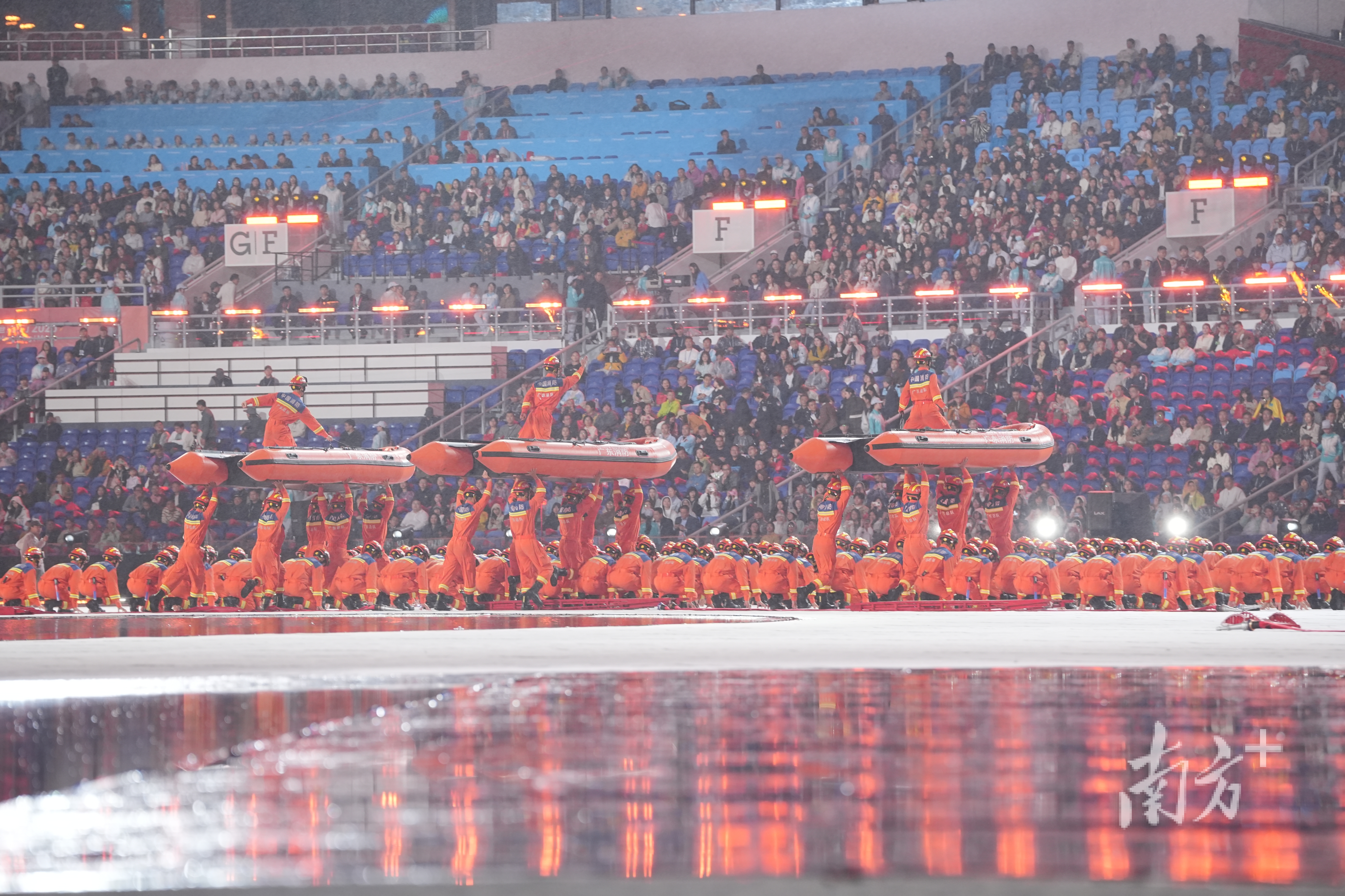 11月9日,186名广东“消防橙”亮相十五运会开幕暖场表演。 粤消宣供图