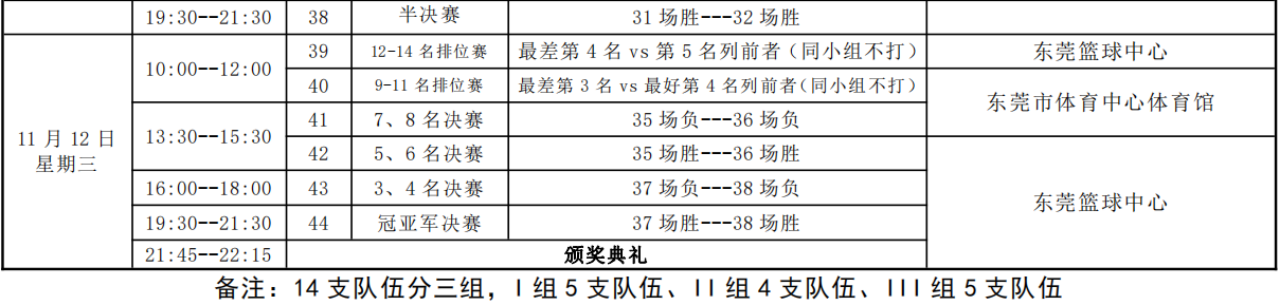 赛事安排