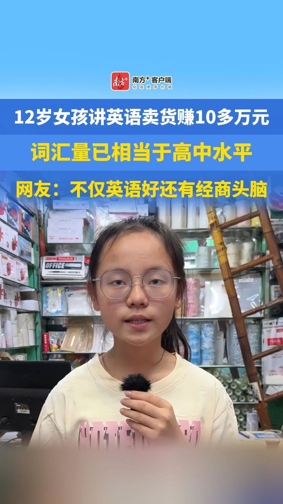 近日,一名12岁女孩Cici用英语与外商电话沟通、销售荧光笔的视频在网上“火”了。女孩母亲马女士透露,女孩在佛山读初一,从去年8月开始陆续帮家里卖货,目前的“销售额”已有10多万元,“把学英语的学费都赚回来了。”详情>>