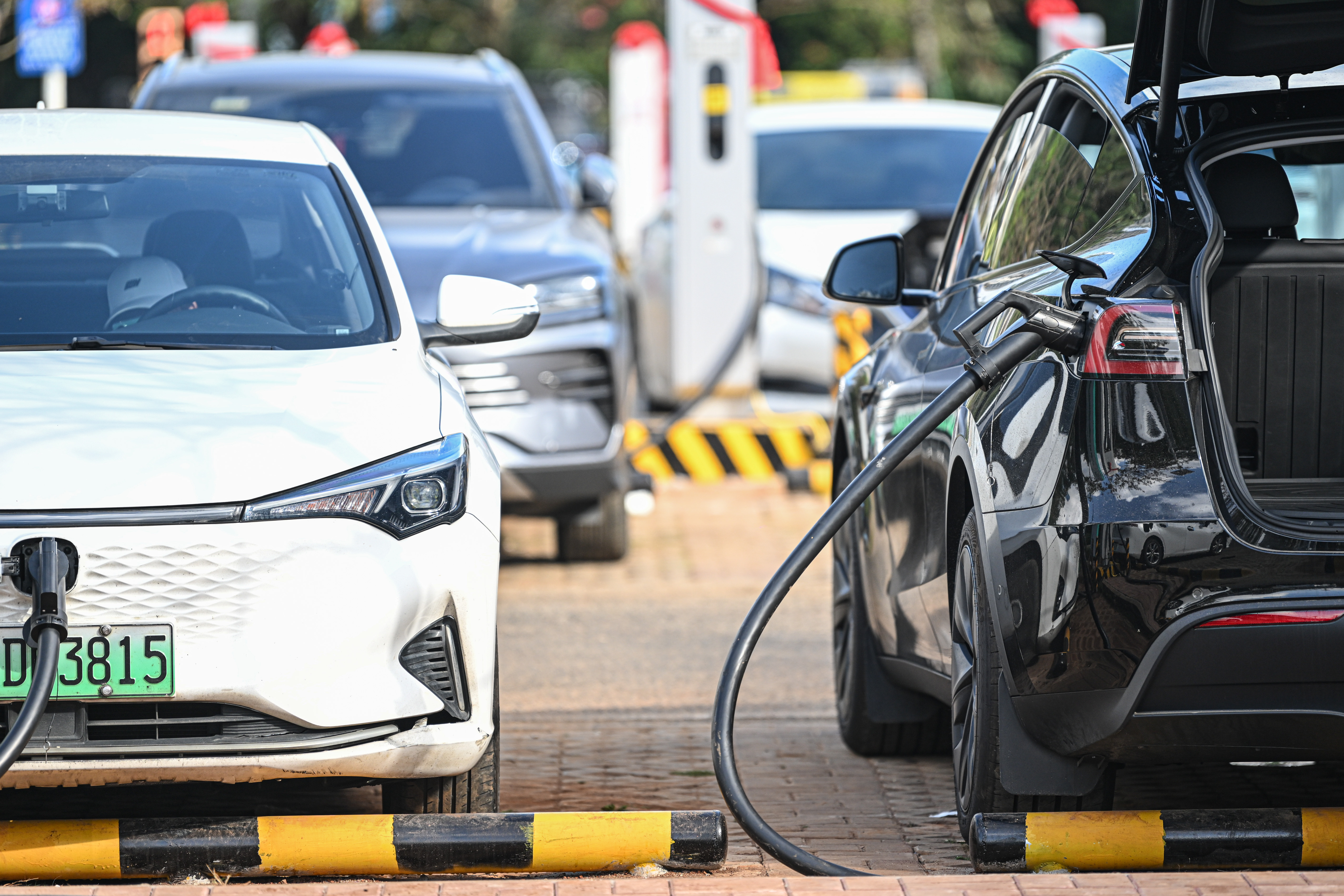 新能源电动汽车在全液冷超充站充电。图源:新华社