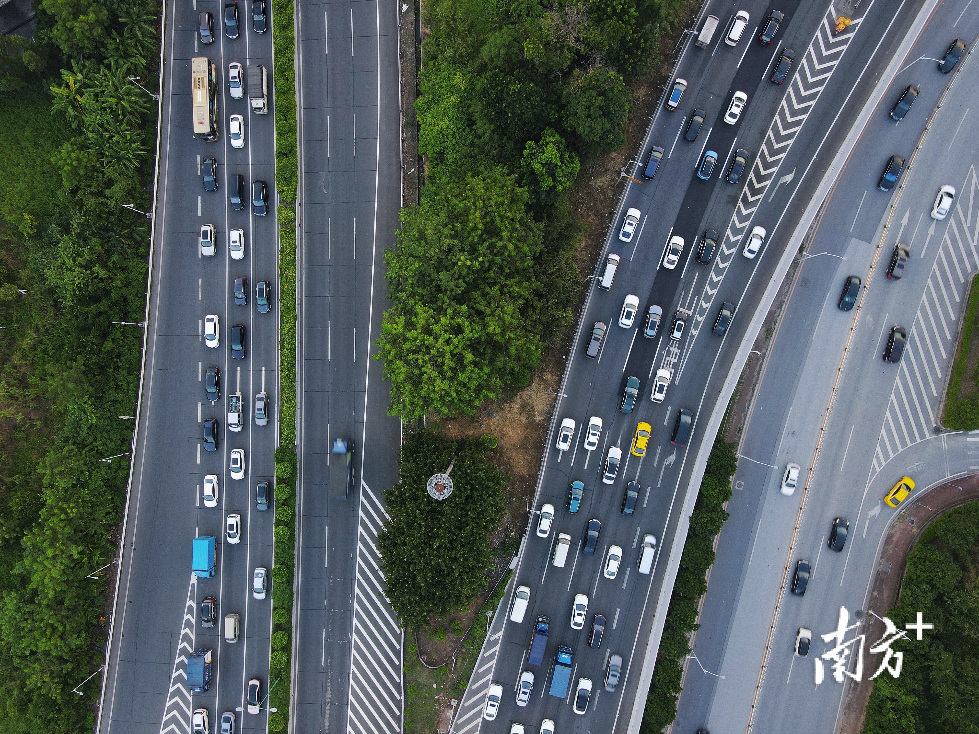 去年国庆黄金周期间,广州多段道路车流密集。
