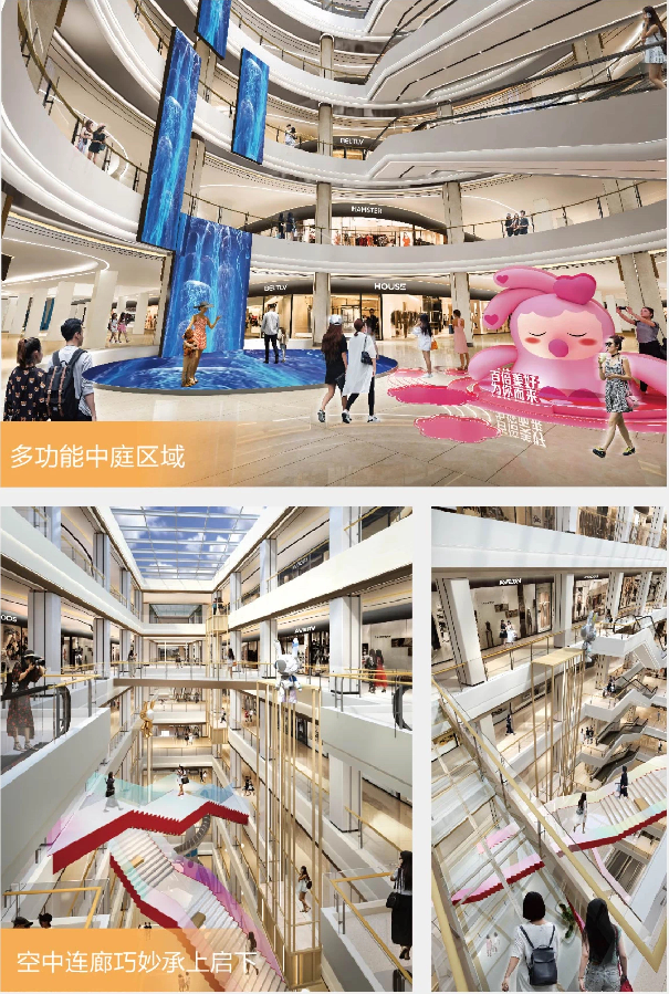 在空间设计上,项目打造多功能中庭区域、空中连廊、中庭旋转步梯、元宇宙食肆空间......一步一景、聚焦人气。