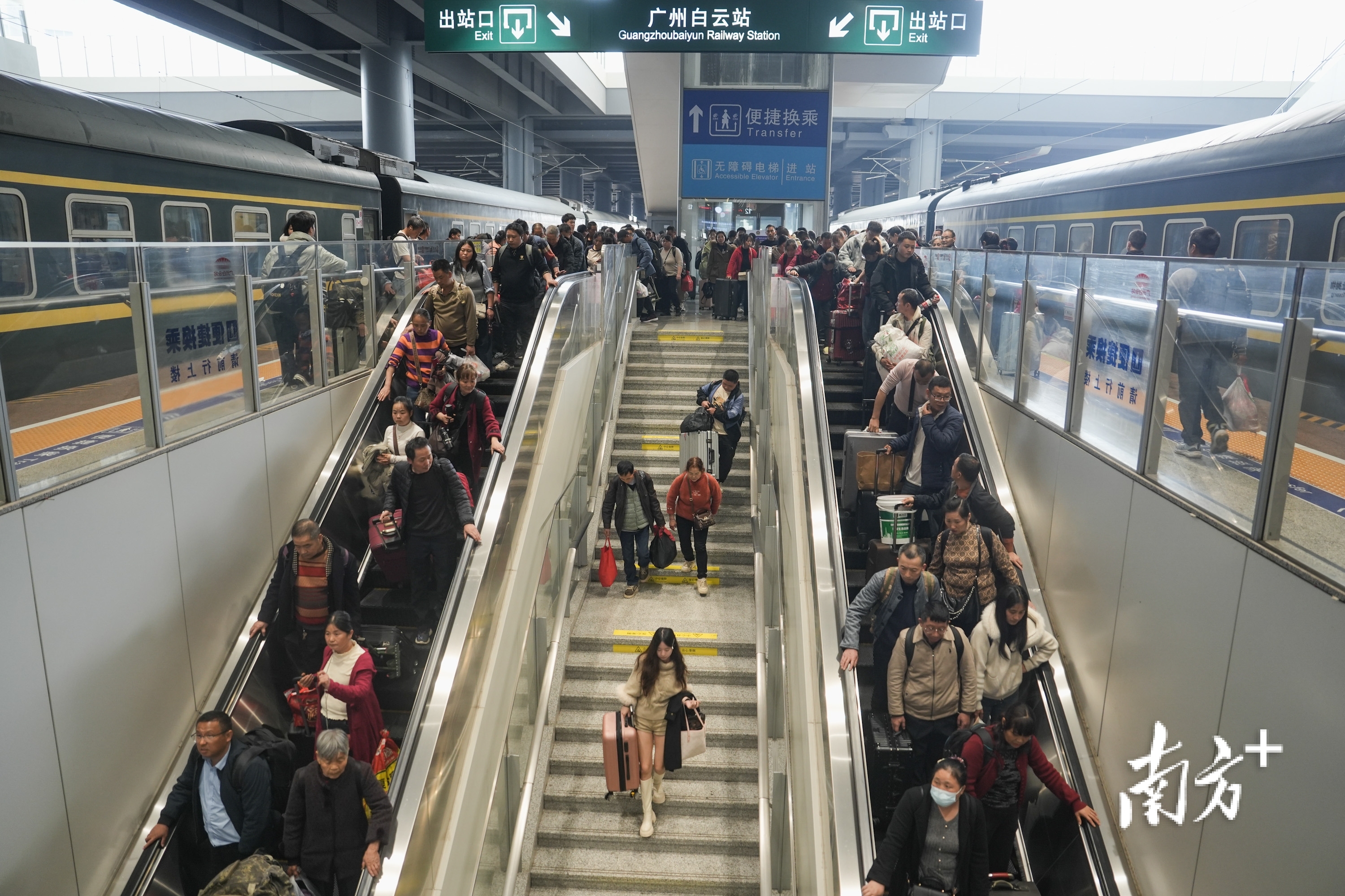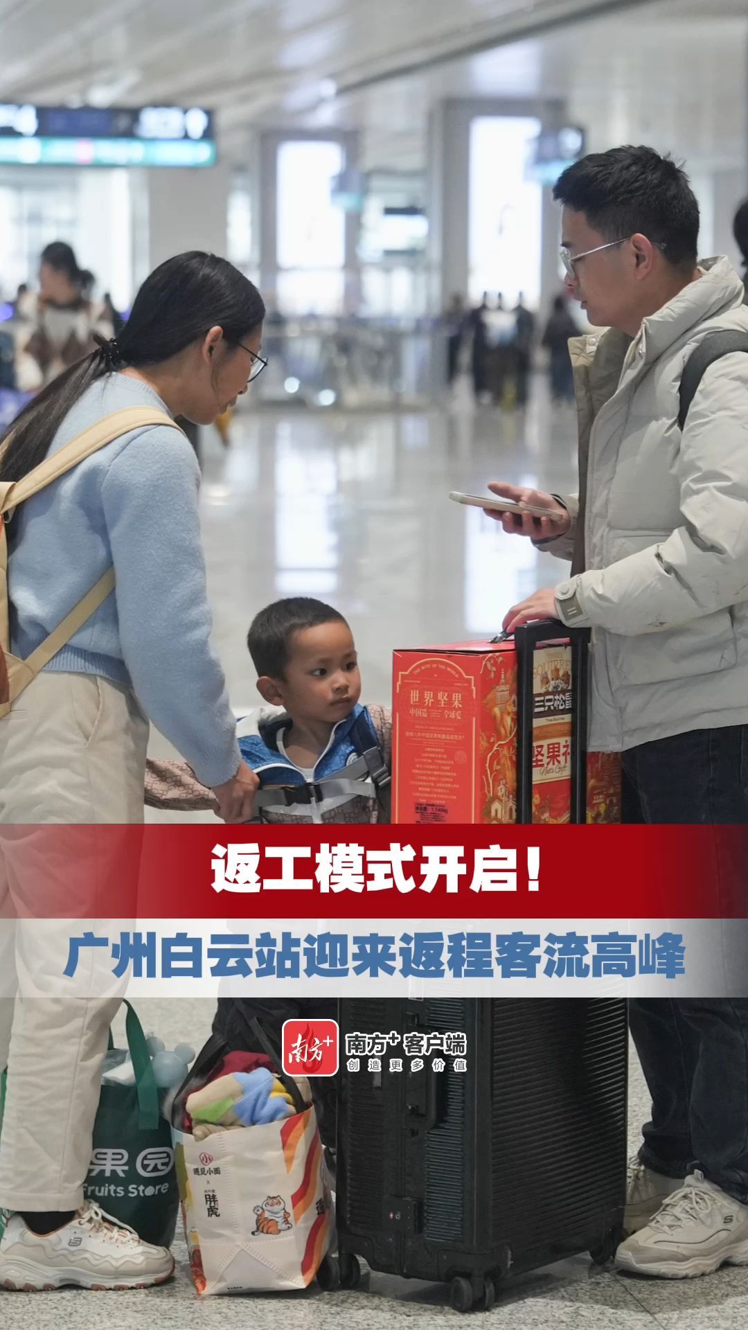 2月23日,正月初七,广州白云站迎来春运返程高峰。随着春节假期结束,务工返程客流集中抵达,车站内外人头攒动,旅客们拖着行囊、带着新春的气息有序进出。站台和出站通道处处是忙碌的身影,人流虽大但整体秩序井然,勾勒出羊城复工复产前热闹而有序的城市剪影。