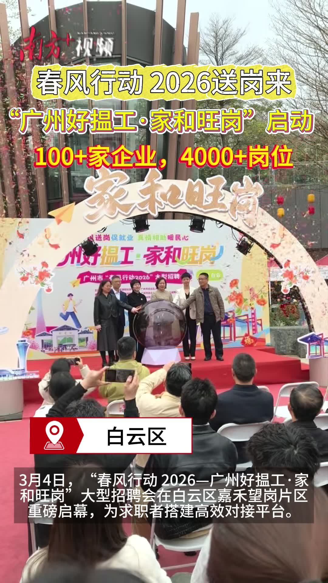 为助力企业复工复产,广州市 “春风行动 2026—广州好揾工·家和旺岗”大型招聘会在白云区嘉禾望岗片区重磅启幕,为来穗求职者搭建高效对接平台,传递“家和万事兴,岗位旺前程”的美好期许,让奋斗有方向、就业有温度。
