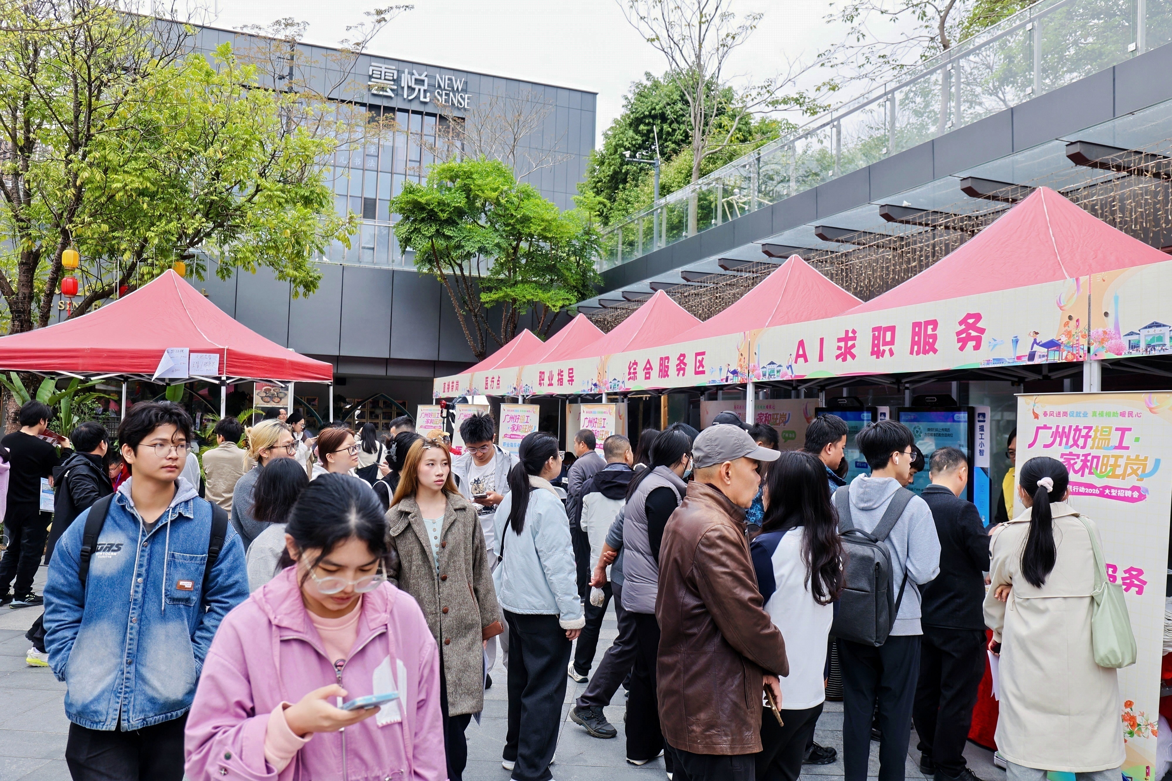 3月4日,邻近嘉禾望岗地铁站的云里下沉式广场内岗位展板林立,人头涌动……因一曲《嘉禾望岗》火爆出圈的嘉禾望岗地铁站,正从承载青春记忆的情感地标,转变为赋能奋斗者的就业福地。