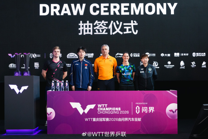 WTT重庆冠军赛2026将于3月10日至15日开赛。8日,男女单打签表出炉:王楚钦首轮对战约纳坦·格罗特,孙颖莎对战朱芊曦。详情>>