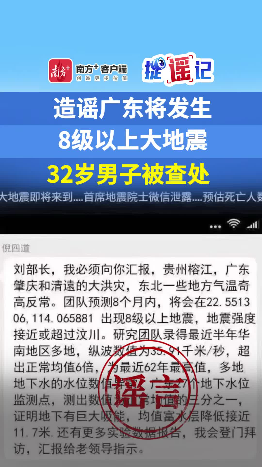 造谣“广东将发生8级以上大地震”,32岁男子被查处
