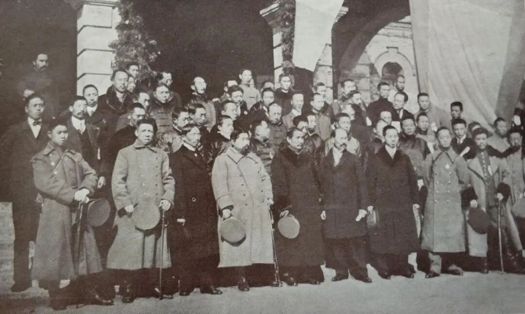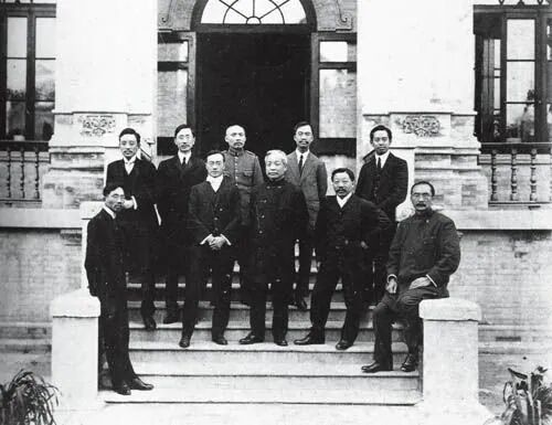 ▲1912年3月,北洋政府第一任内阁合影:右一为国务总理唐绍仪,左一为教育总长蔡元培,左二为农林总长宋教仁,后排中间穿军装者为陆军总长段祺瑞。宋教仁于当年7月辞职。