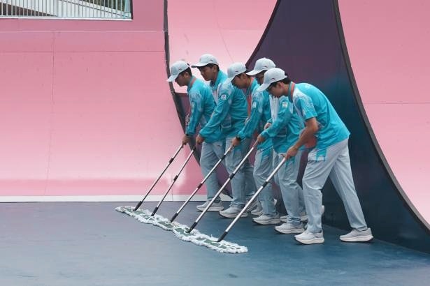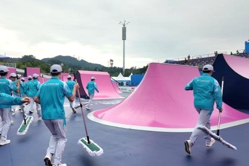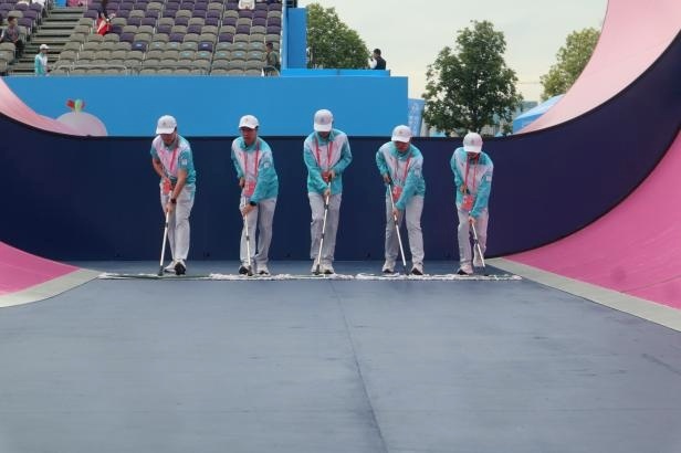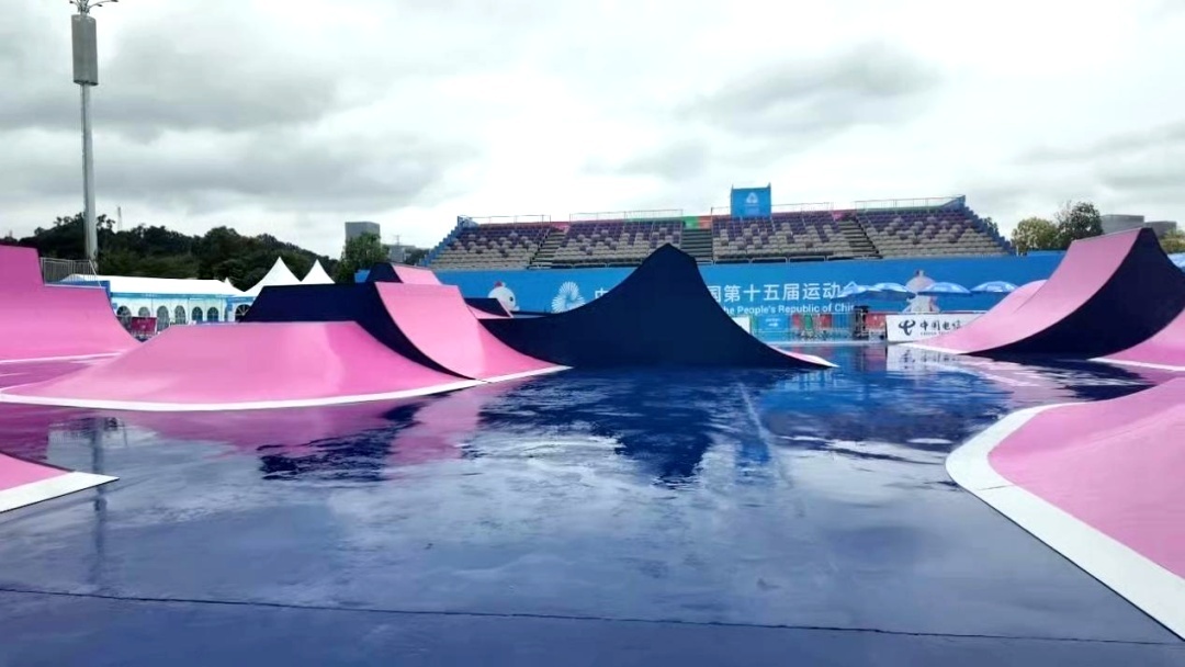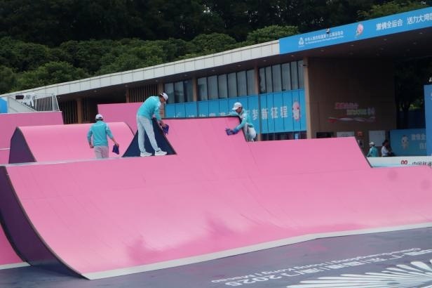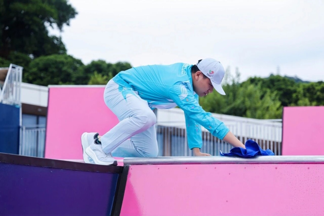 自由式小轮车比赛对场地的光滑程度、阻力和摩擦力都有着严格的标准和要求,稍有偏差,都可能影响运动员的正常发挥。因此,保持场地的干燥和清洁,至关重要。