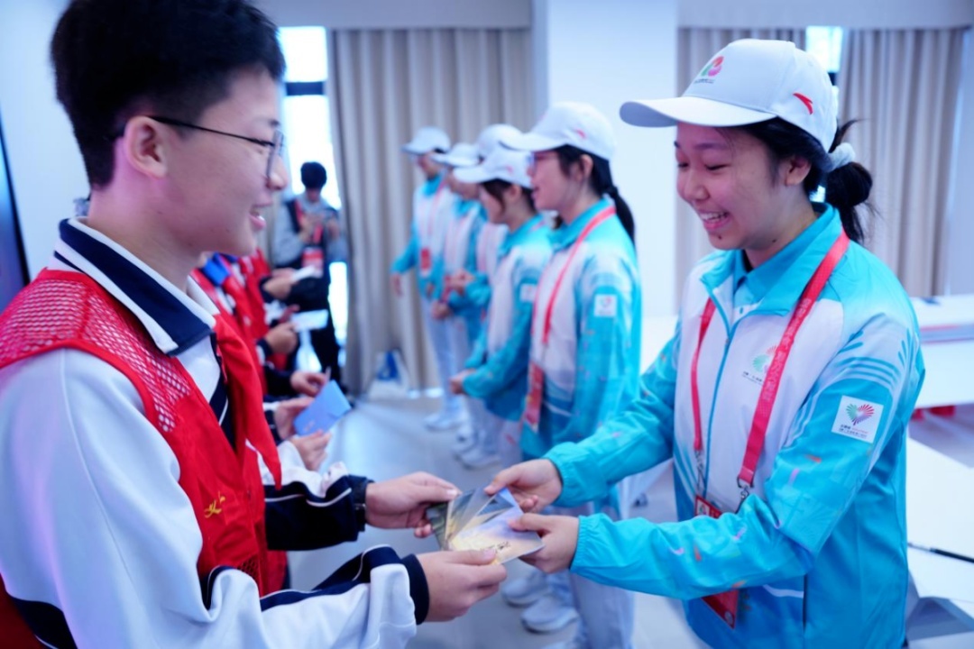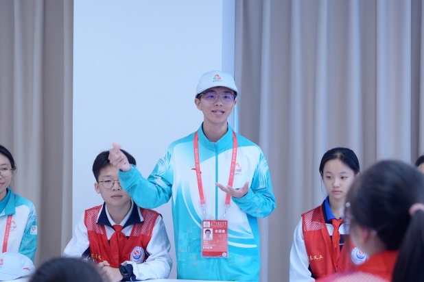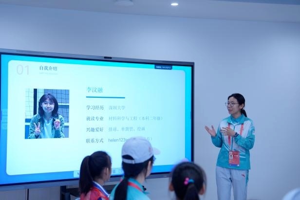 活动中,深大的两名志愿者代表梁志聪和李汶融分享了自己在全运会赛事服务过程中的心得体会。对参与全国最高规格体育盛会志愿服务的学长学姐,小朋友们表现出了极大的敬意。