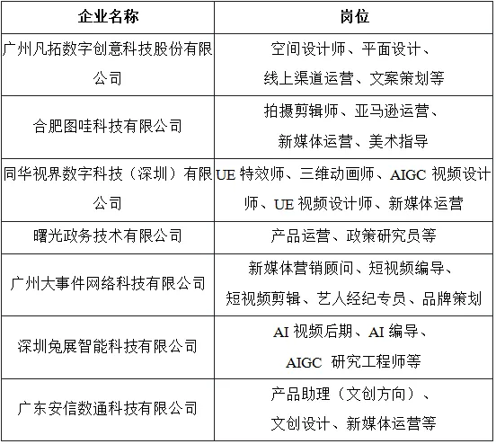 影视动漫板块同样星光熠熠,国民IP《熊出没》的制作方华强方特、拥有《喜羊羊与灰太狼》等经典作品的奥飞娱乐,以及新锐影企广州薄荷糖影视文化有限公司均积极参与招聘。