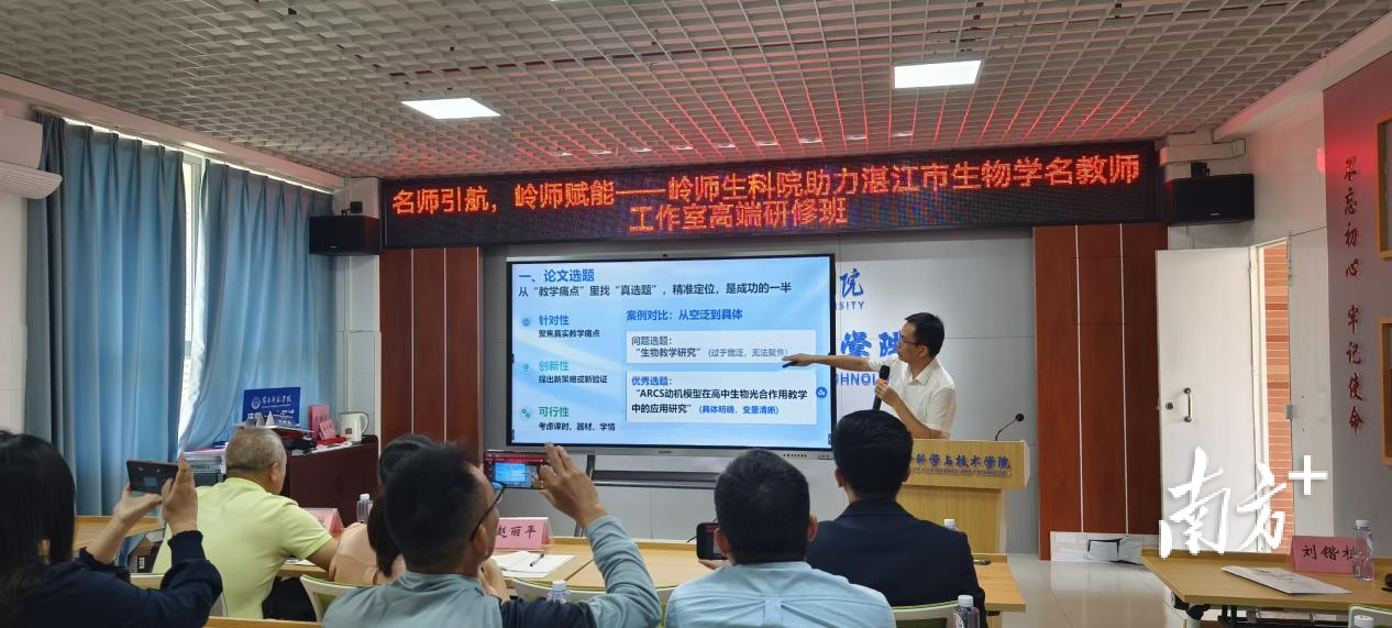 “岭师的实验室、专家资源,就是要助力湛江地区教师解决教学里的‘挠头事’。”生科院院长刘锴栋提到,这次研修特意搭建了“高校专家+一线名师”的双导师方阵,就是要让理论不悬空、技能能落地。