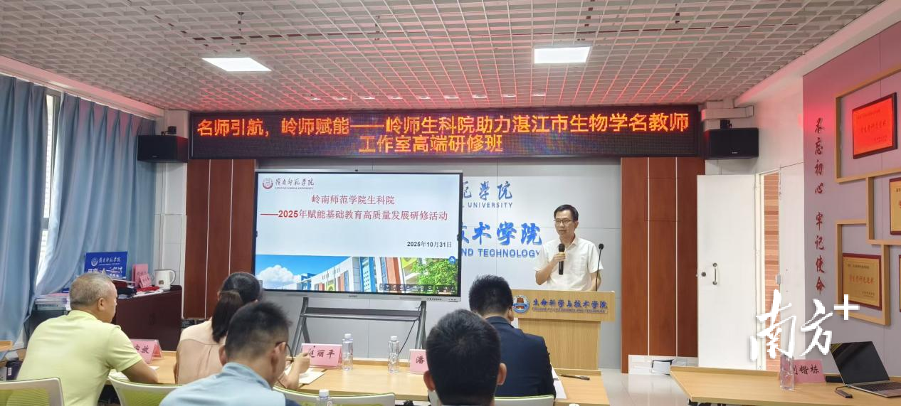 10月31日,湛江市各区县的生物学骨干教师齐聚岭南师范学院,参加由岭师生科院联合四个湛江市生物学名教师工作室举办的高端研修班。学员分别来自湛江市第一中学、湛江市爱周高级中学、遂溪县大成中学等多所中学。这场以解痛点、强技能为目标的研修,通过理论+案例+观摩+实操的四维课程,把高校资源转化为湛江教师能直接使用的教学工具箱,为粤西基础教育生物学学科提质加码。