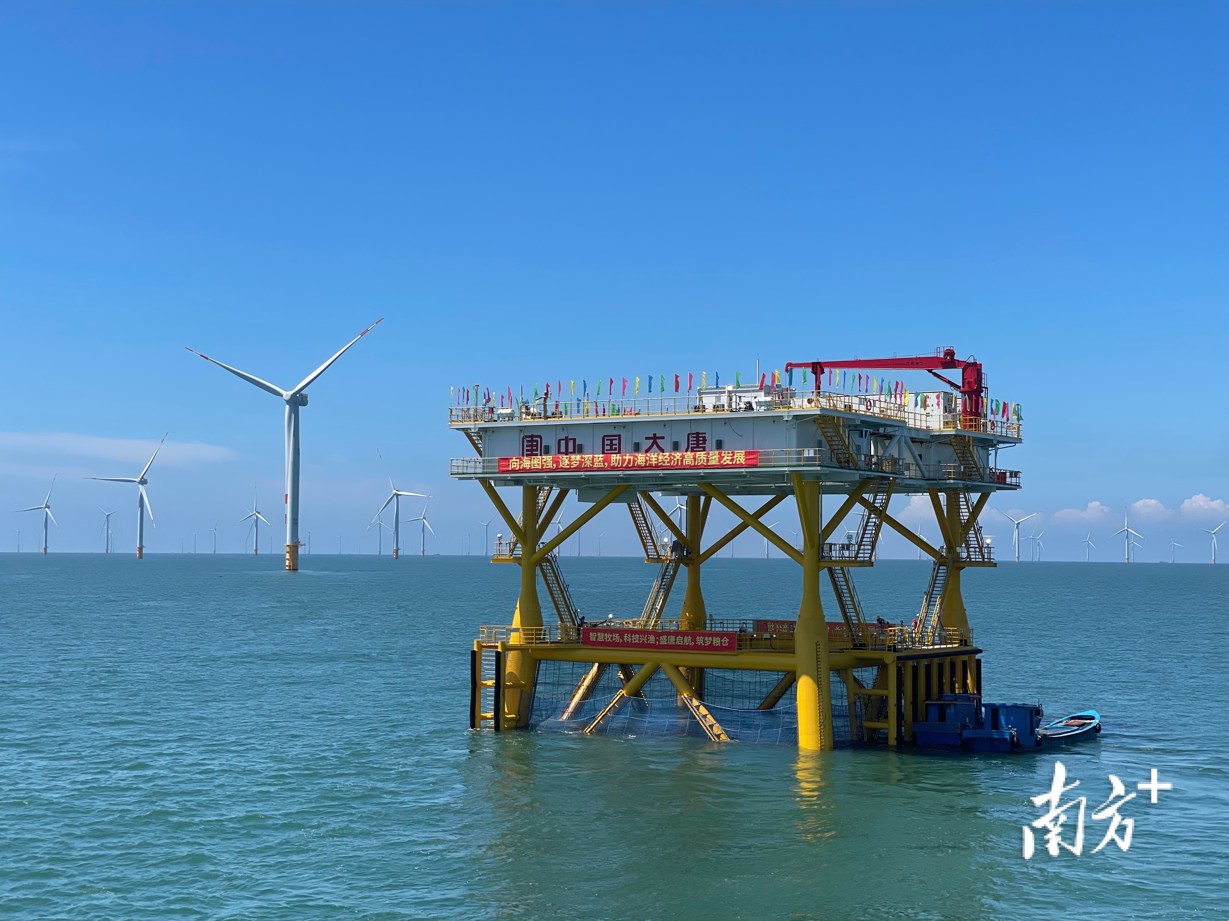 “它不仅是‘蓝色能源站’,更是一座‘海上粮仓’。”大唐汕头新能源有限公司党委书记娄淑军站在“盛唐一号”平台上介绍,这一全国首个采用吸力筒基础桁架结构的“风渔融合”型海洋牧场,养殖水体达1.36万立方米,预计年产高经济价值海鱼180吨。