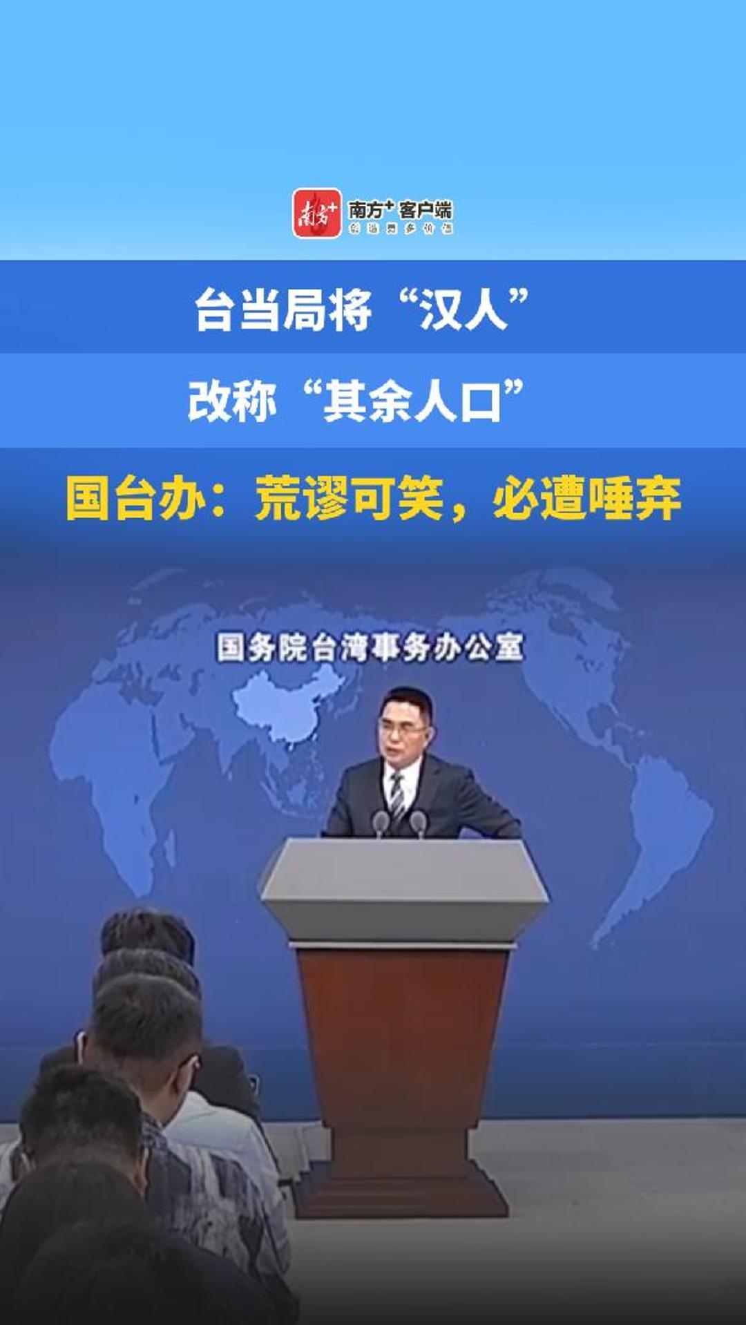 台当局将“汉人”改称“其余人口”,国台办:荒谬可笑,必遭唾弃
