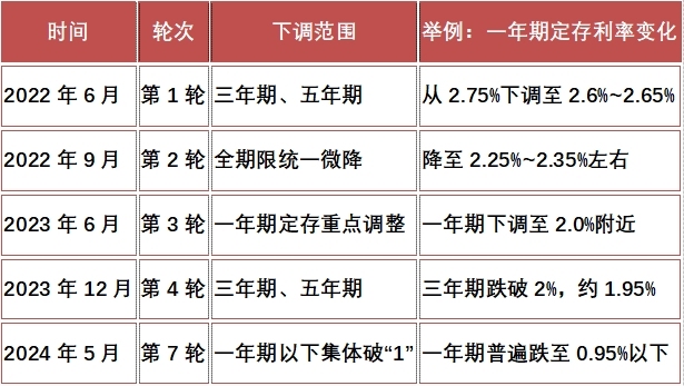 过去两年多来,银行存款利率几乎“每半年就动一次”,并且形成了如下节奏: