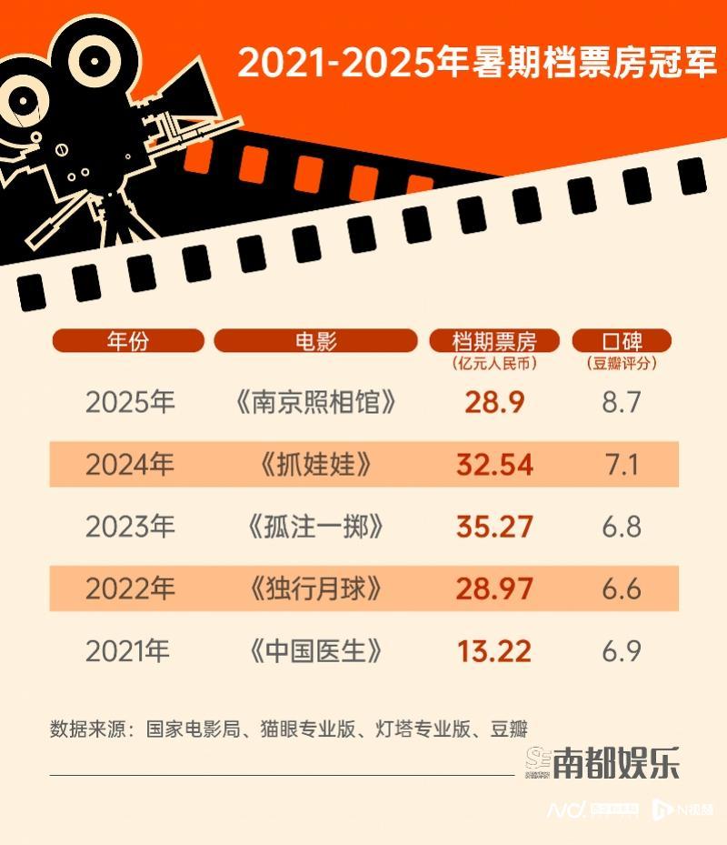 结合历年暑期档的数据,今年暑期档影片在口碑上确实属于超常发挥。票房前十的影片,除了《东极岛》还未开分,整整6部电影突破了豆瓣8分。作为暑期档票房冠军的《南京照相馆》,豆瓣评分高达8.7分,远超去年的冠军《抓娃娃》(7.1分)和前年的冠军《孤注一掷》(6.8分)。