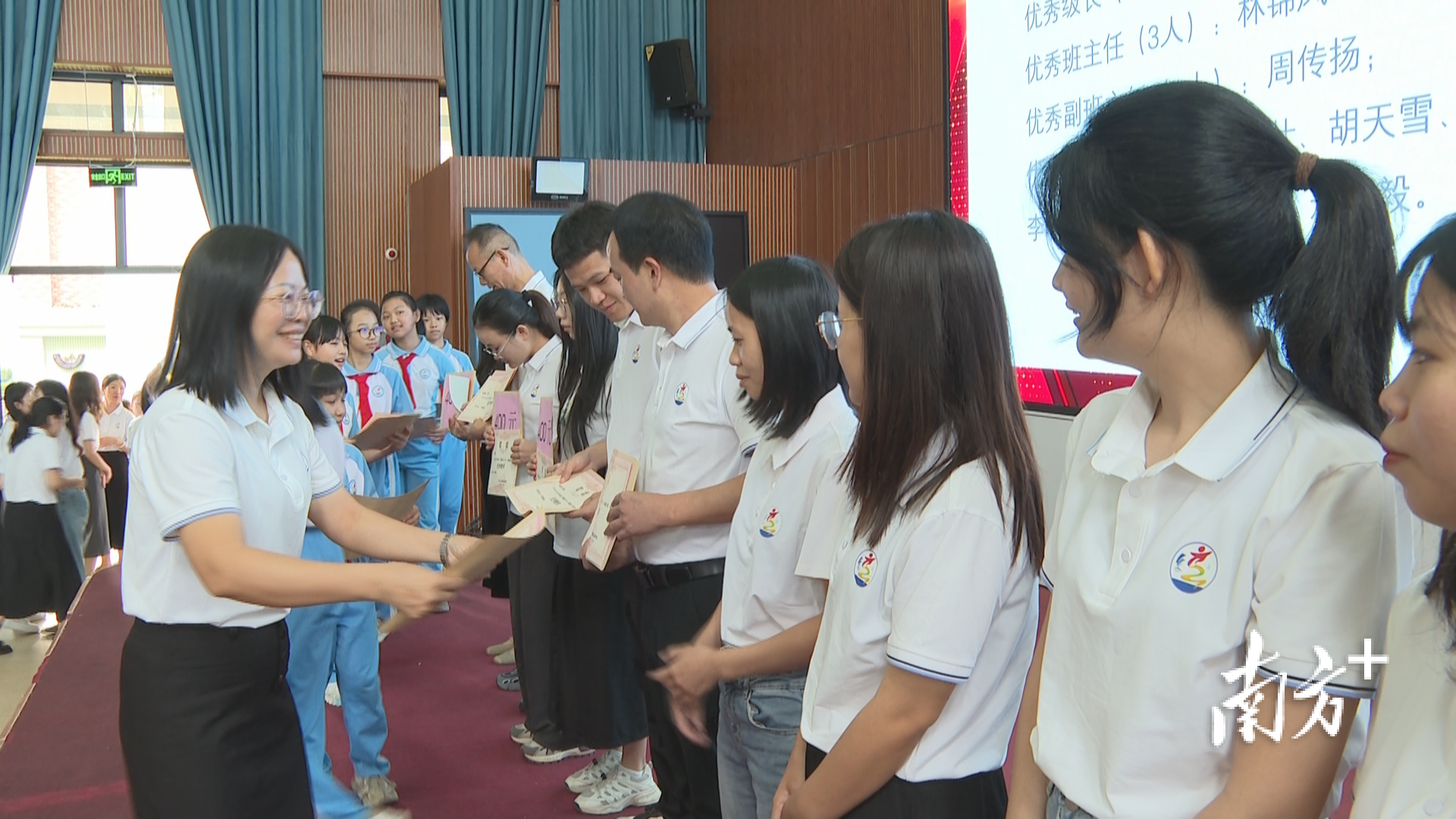 “作为教师,学生的信任和学校的认可让我深感肩上责任的分量。未来,我将深耕教学革新,探索更生动的课堂形式,激发每个孩子的潜能;同时将善德融入日常点滴,帮助学生树立‘知善、向善、行善’的品格根基。此外,我也将会以谦逊之心向同行、学生学习,用教育智慧点亮更多心灵。”金湾学校教师朱楚茵说。