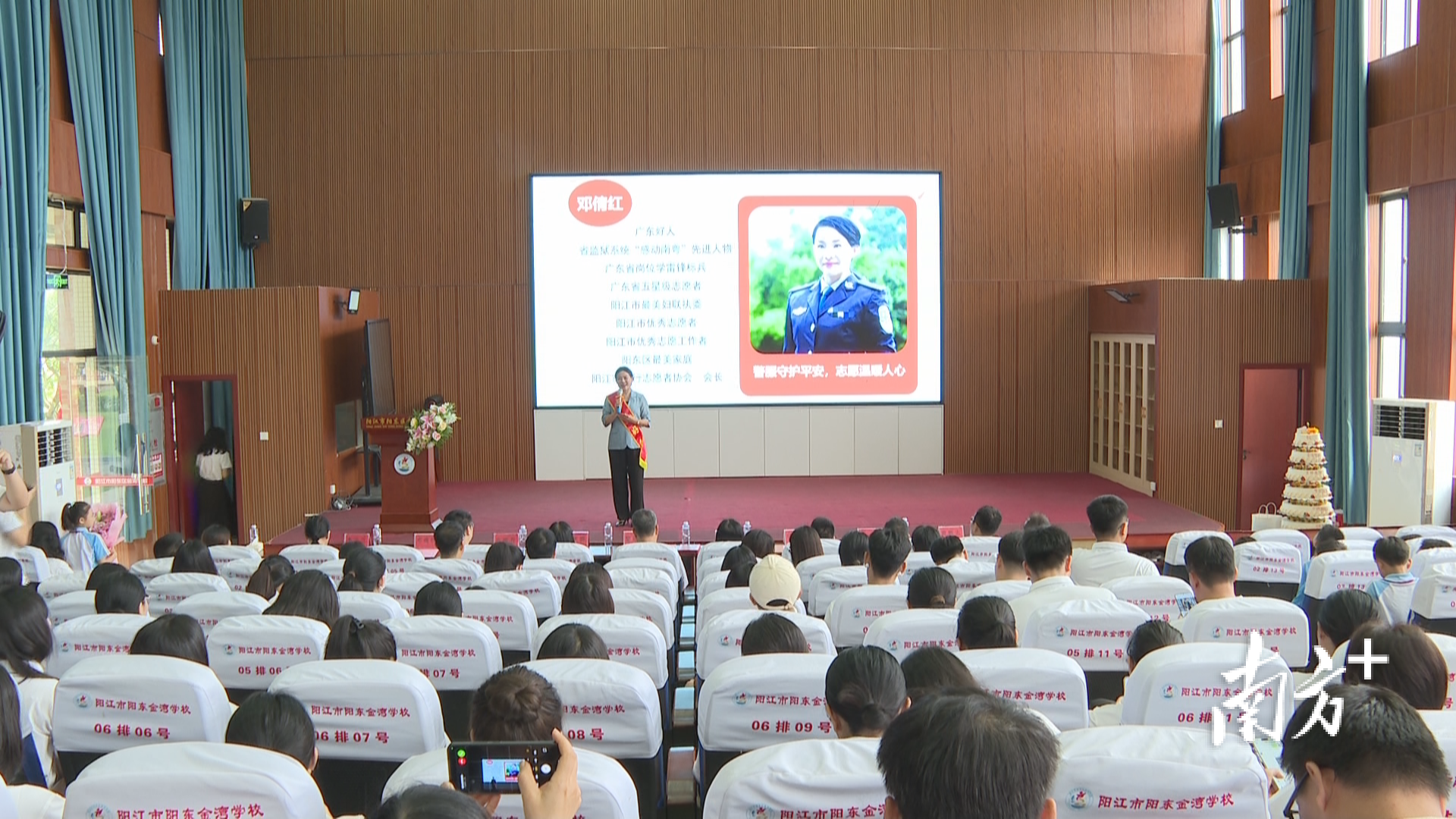 当天,庆典还特别设置了由阳东区委宣传部、区文明办组织的“榜样引领成长,善德浸润校园——阳东区厚德善行讲堂进校园”活动环节。活动邀请了“广东好人”邓倩红和李远兰,现场分享她们的感人故事。两位“好人”代表积极带领志愿者投身公益事业,她们的善行与美德深深打动了在场师生。