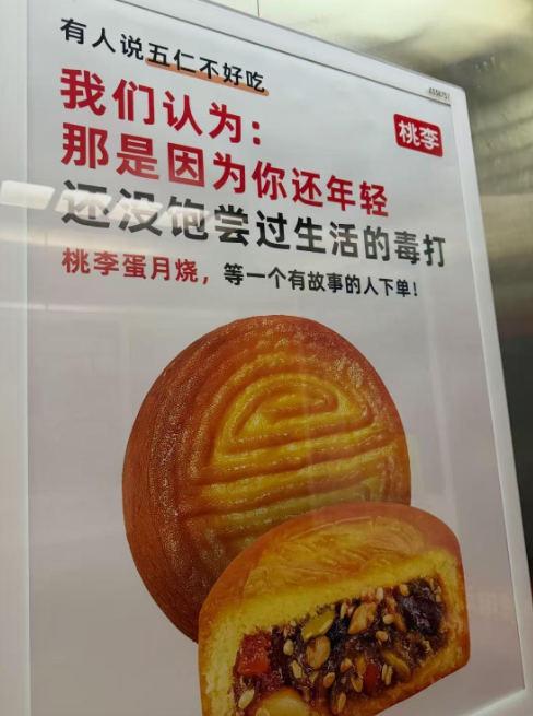 近日,桃李面包投放了五仁口味蛋月烧的电梯广告,广告文案为“有人说五仁不好吃,我们认为:那是因为你还年轻,还没饱尝过生活的毒打”,消息迅速引发舆论热议。