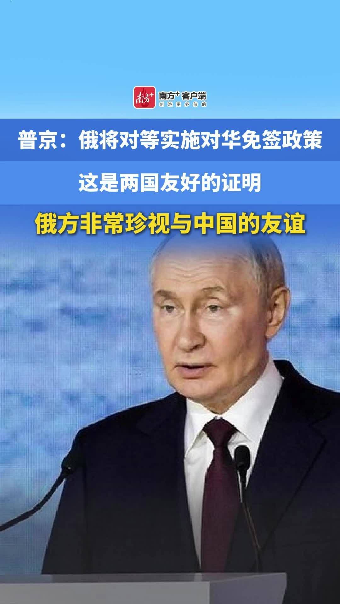 普京:俄将对等实施对华免签政策 这是两国友好的证明 俄方非常珍视与中国的友谊