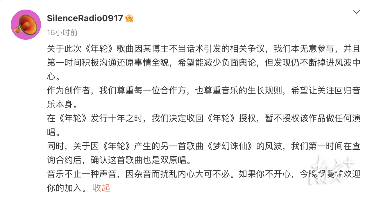 这场《年轮》原唱之争的始末究竟如何?南方+记者马上为大家复盘。