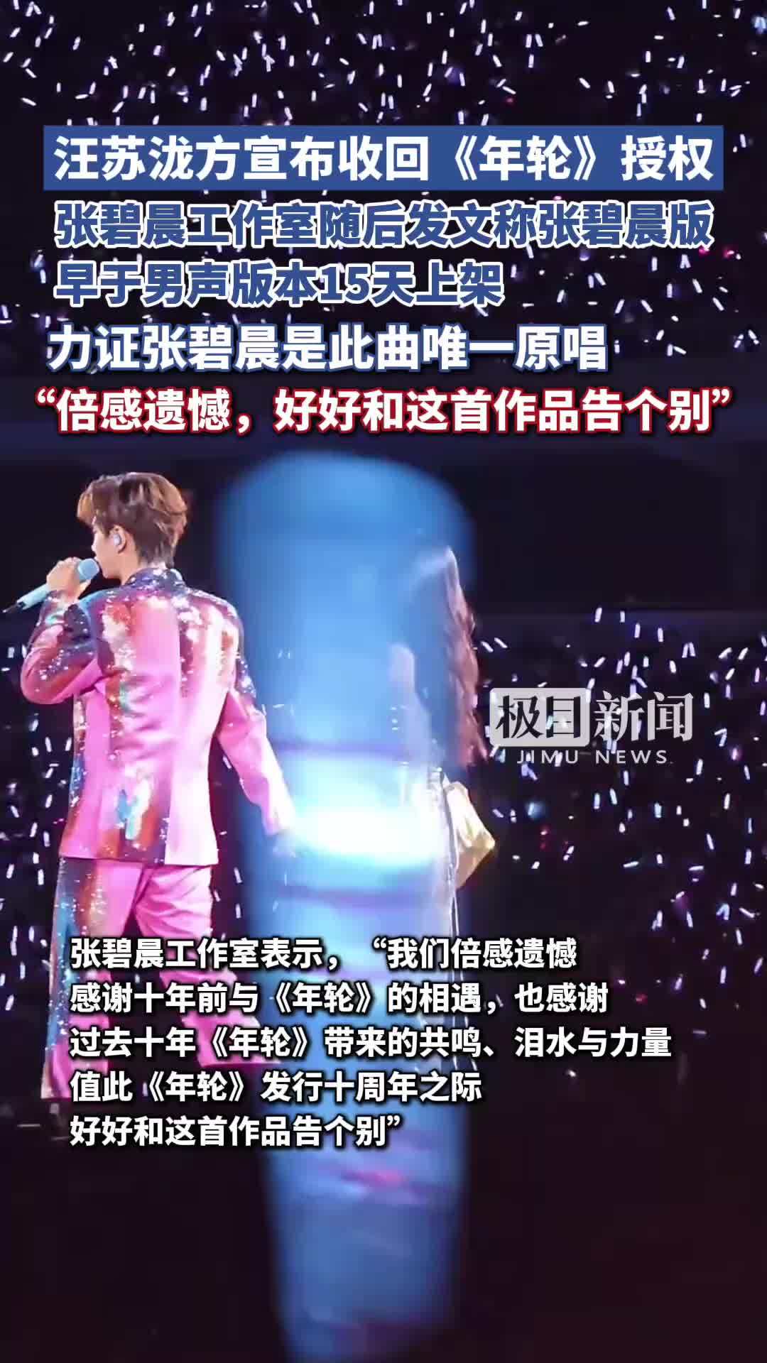 (汪苏泷方宣布收回《年轮》授权,张碧晨工作室随后发文,力证张碧晨是此曲唯一原唱)