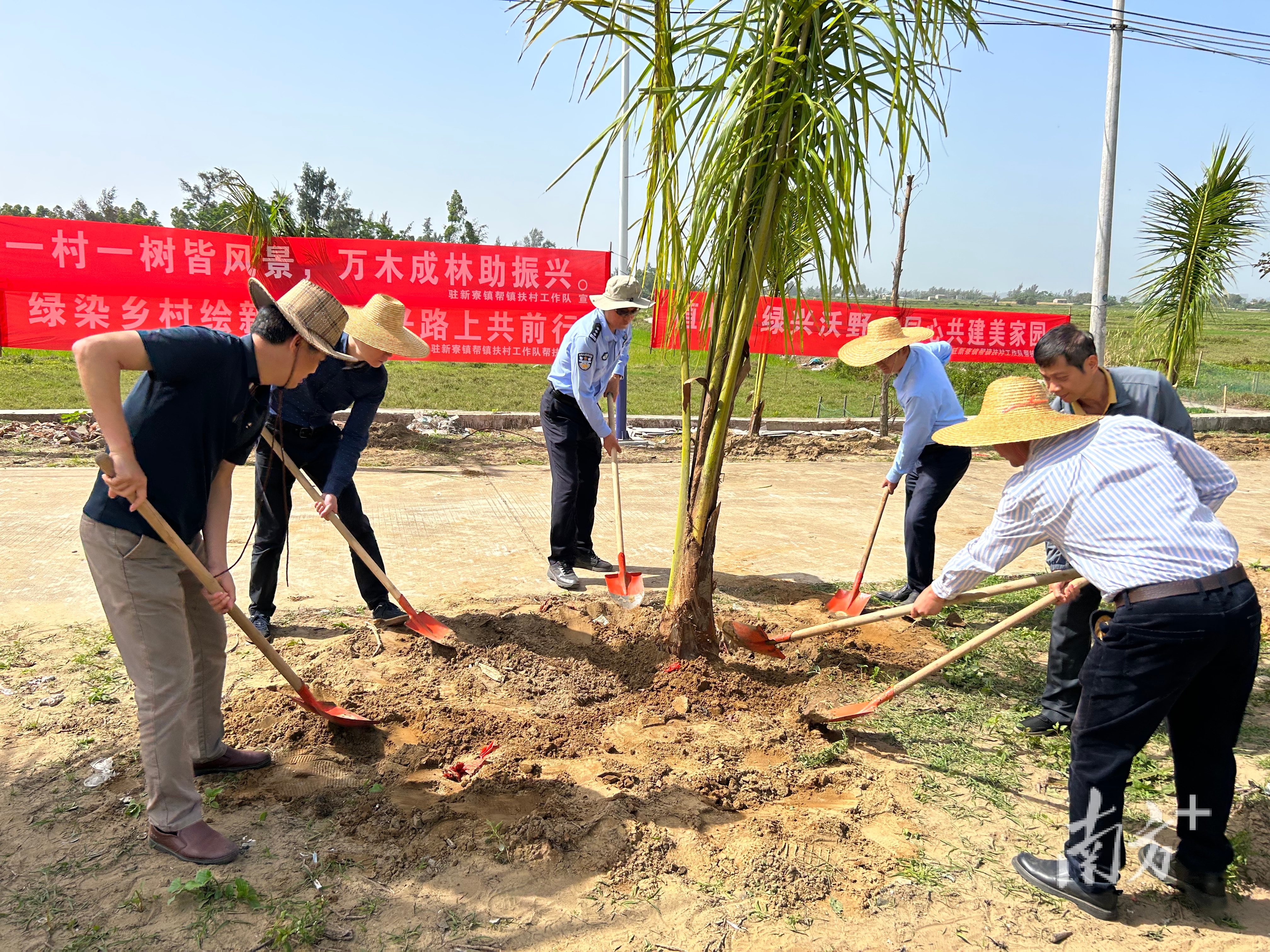 广东省港航集团驻镇帮镇扶村工作队正在种植椰子树。 受访者供图
