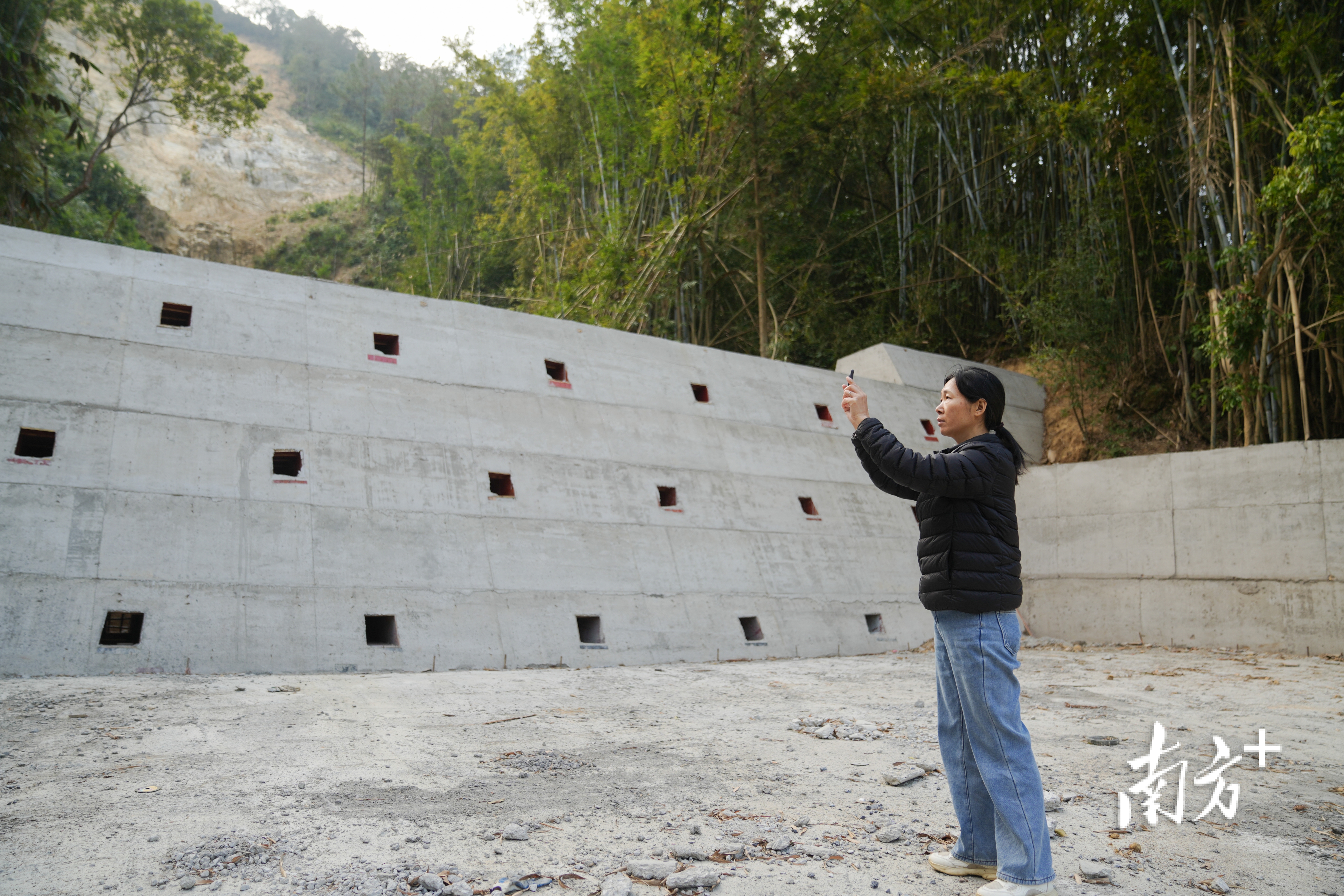 而新修的“1号”“2号”堤坝,正是位于此前的滑坡之上。这项工程通过将半山腰的位置修建起水泥挡土墙,可保障即使再有滑坡等自然灾害发生,村庄也能安然无恙。