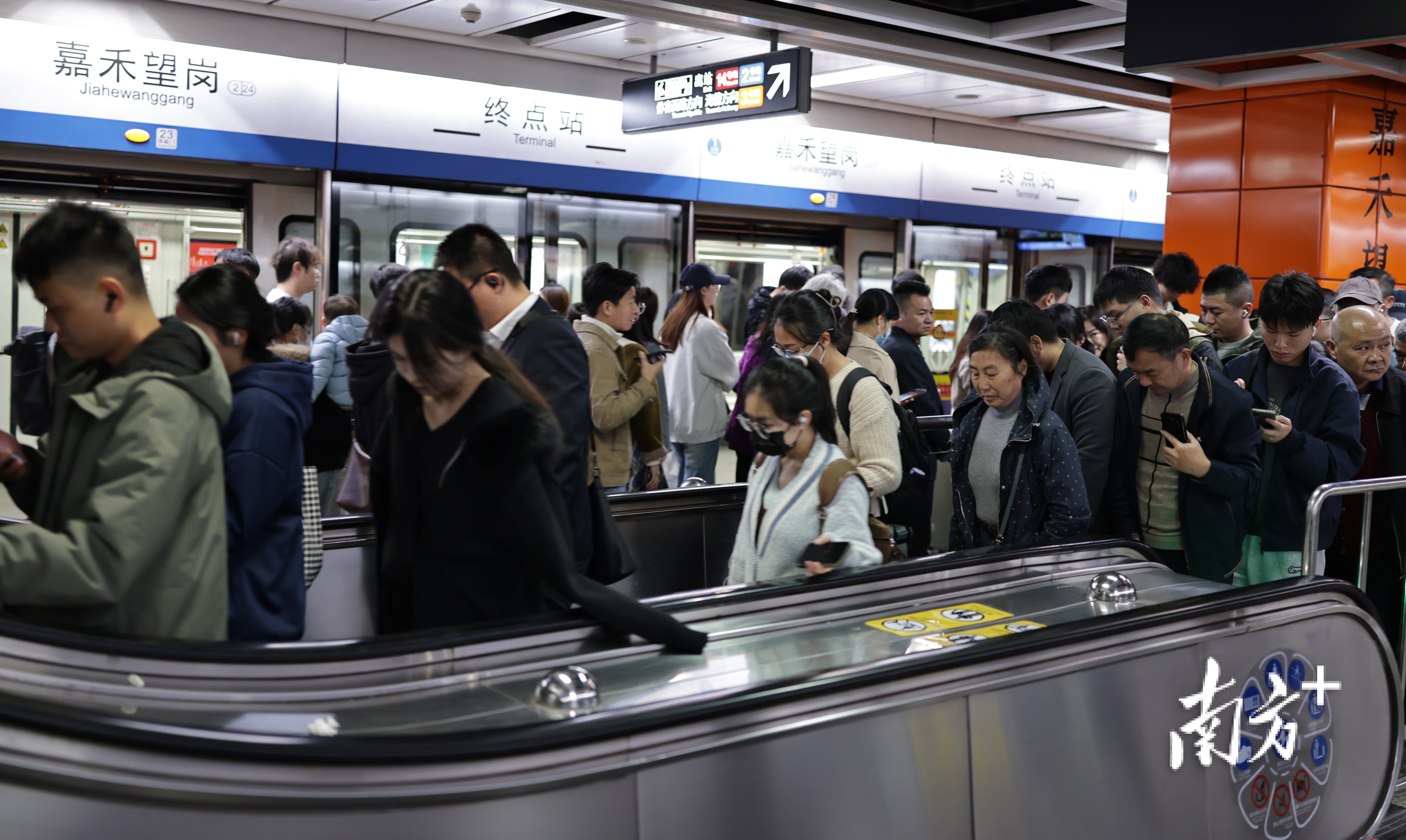 1月29日,嘉禾望岗地铁站内,形形色色的年轻人往来穿梭。