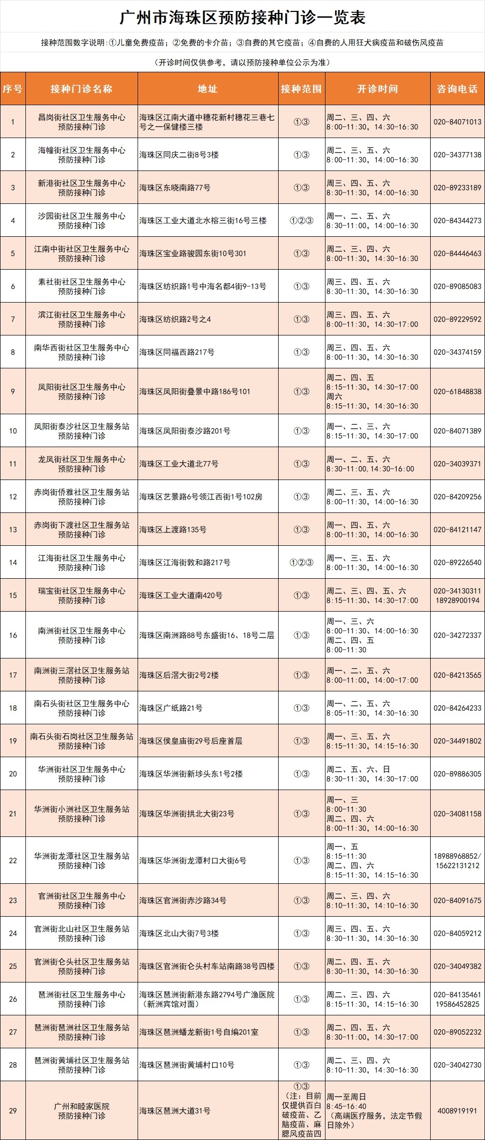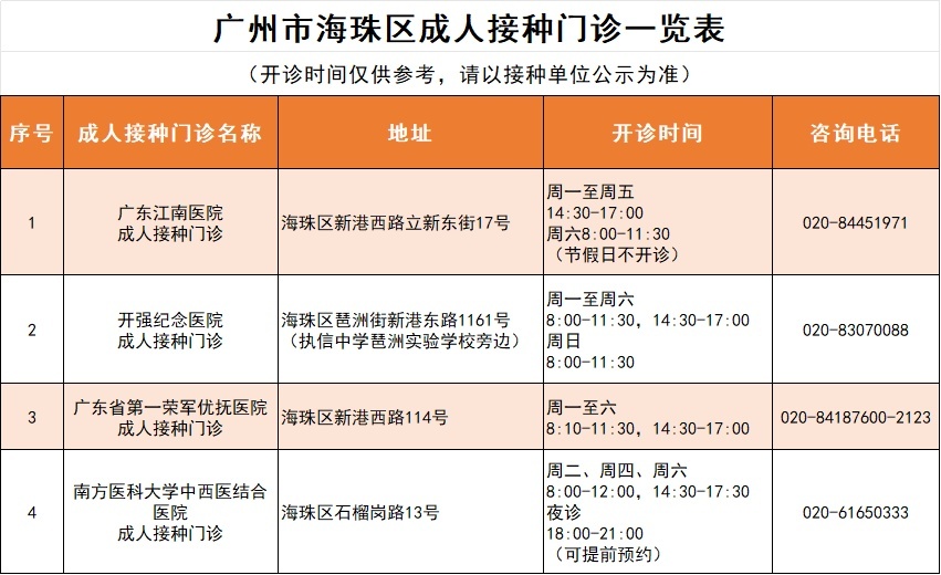 海珠区接种门诊信息